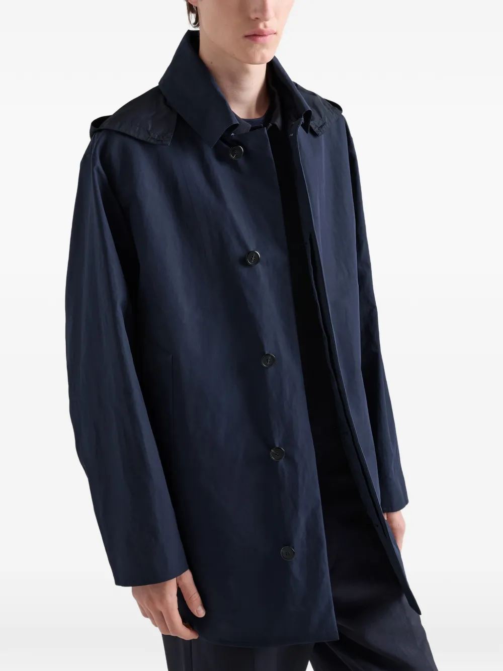 Точность портновского кроя, отличающая коллекции Pradamen, проявляется в таких изделиях с духом модернизма, как эта хлопковая куртка с капюшоном. Сочетая спортивные мотивы и мастерство исполнения, эта вещь стала символом новой концепции стиля для мужчин.