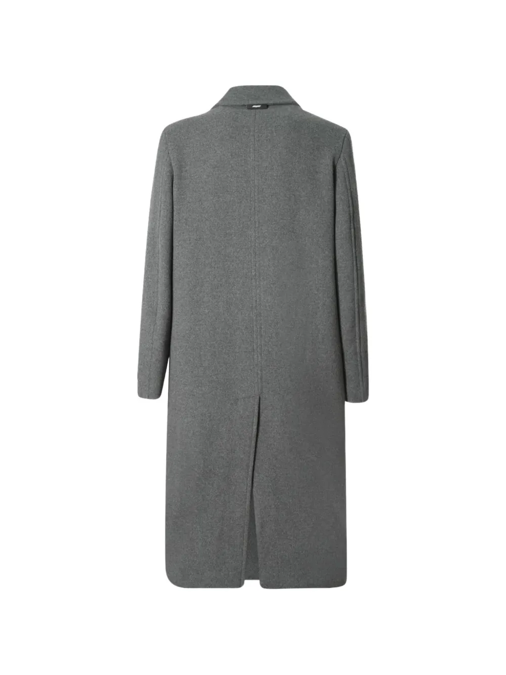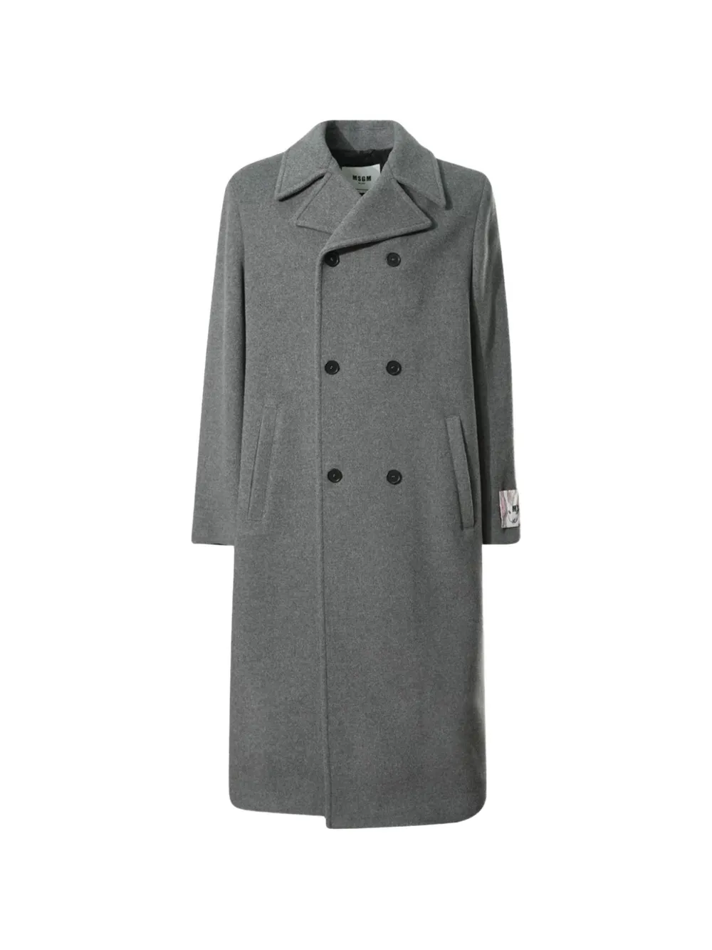 Серый двубортный с застежкой на пуговицы и прорезными карманами