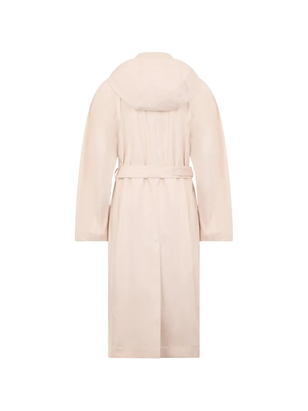 Бледно-розовый широкий воротник, пояс, длинные рукава, удлиненный силуэт