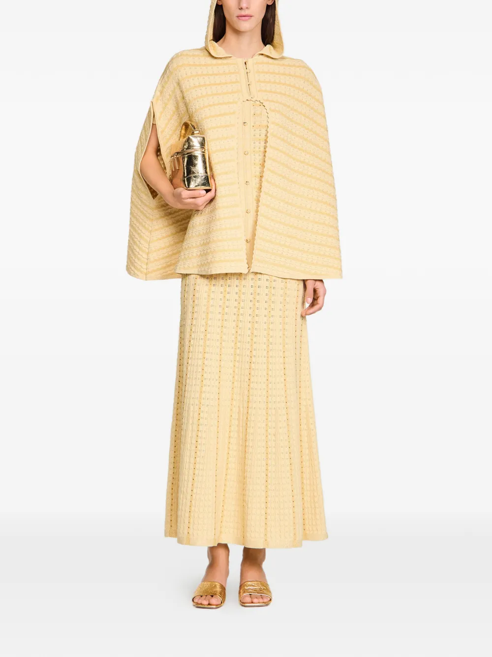 Кейп с капюшоном и стразами Sandro, бежевый