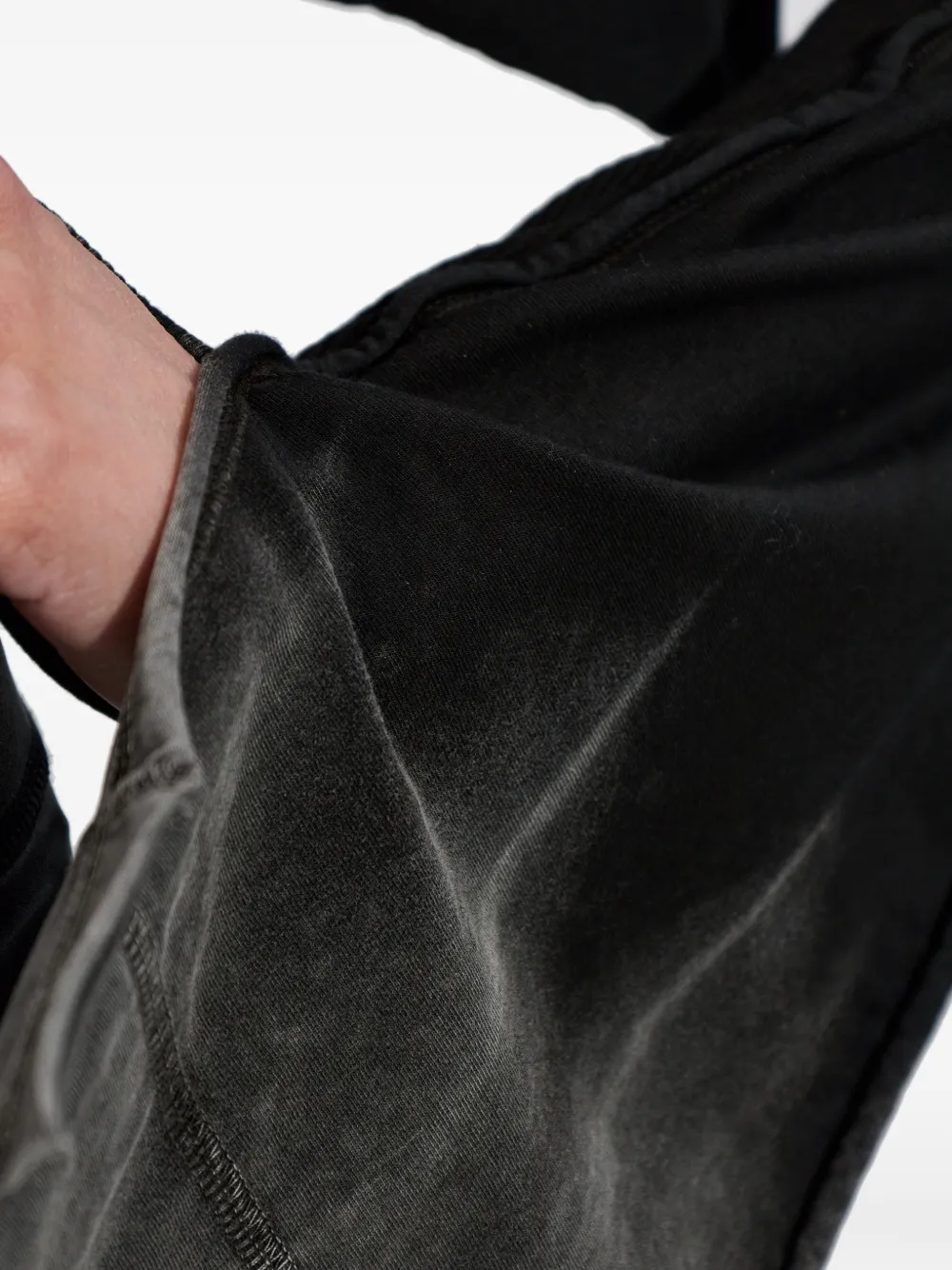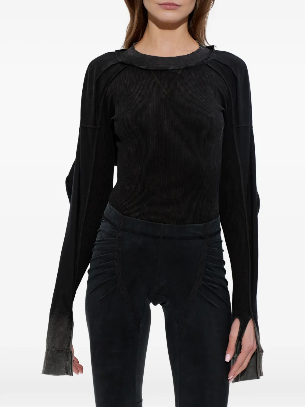 Черный хлопковый лонгслив в рубчик с вырезом для большого пальца и круглым воротом