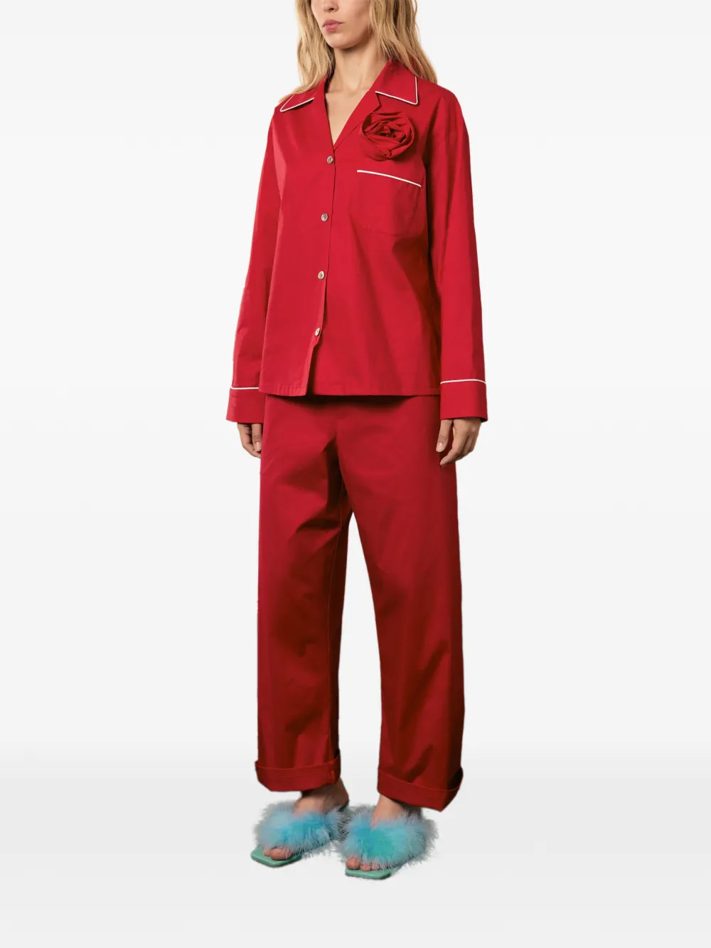 Красная роза, контрастная отделка, застежка на пуговицы спереди, длинные рукава, накладной карман спереди