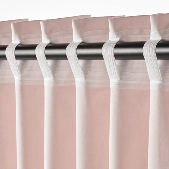 Тесьма по верхнему краю позволяет повесить гардину непосредственно на карниз, используя специальные прорези. Гардину также можно повесить на специальные крючки с бегунками.