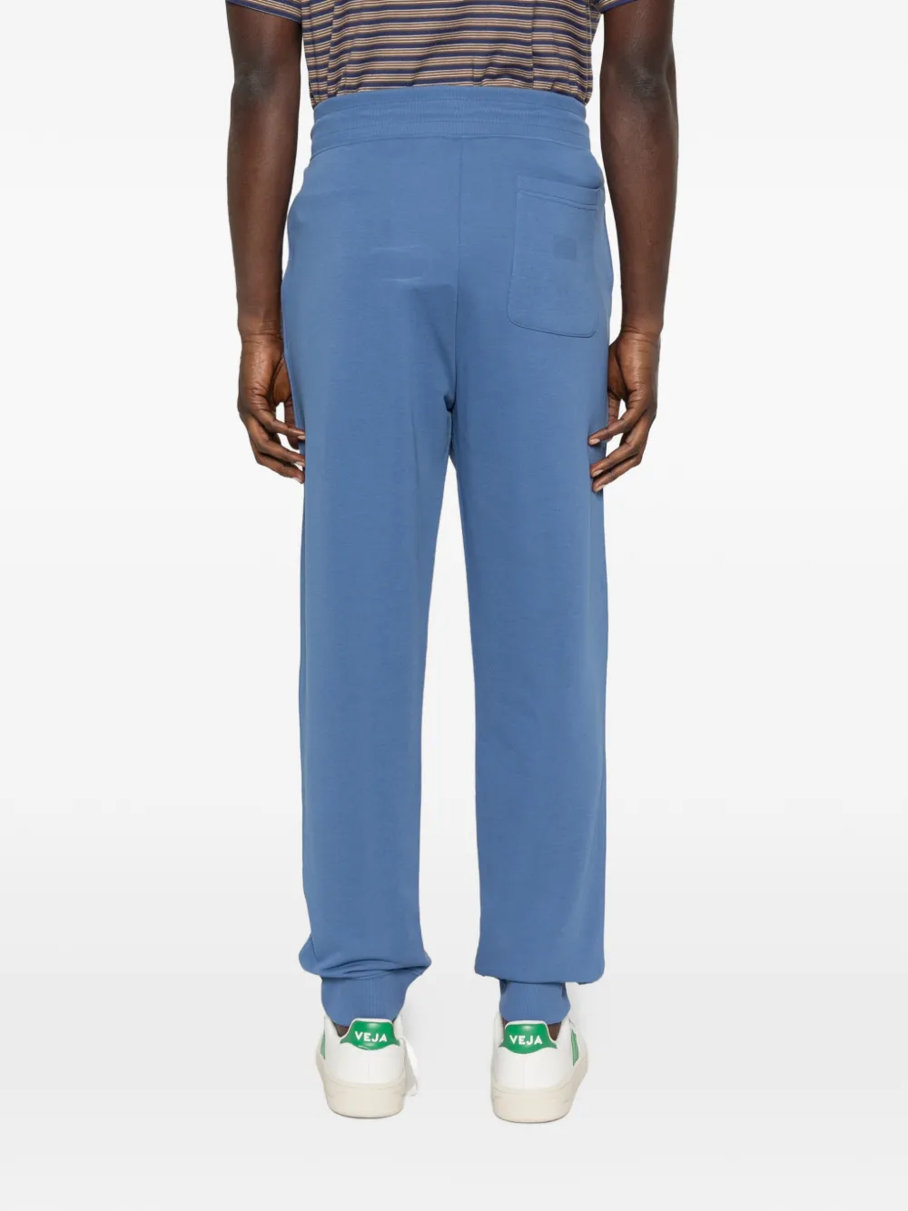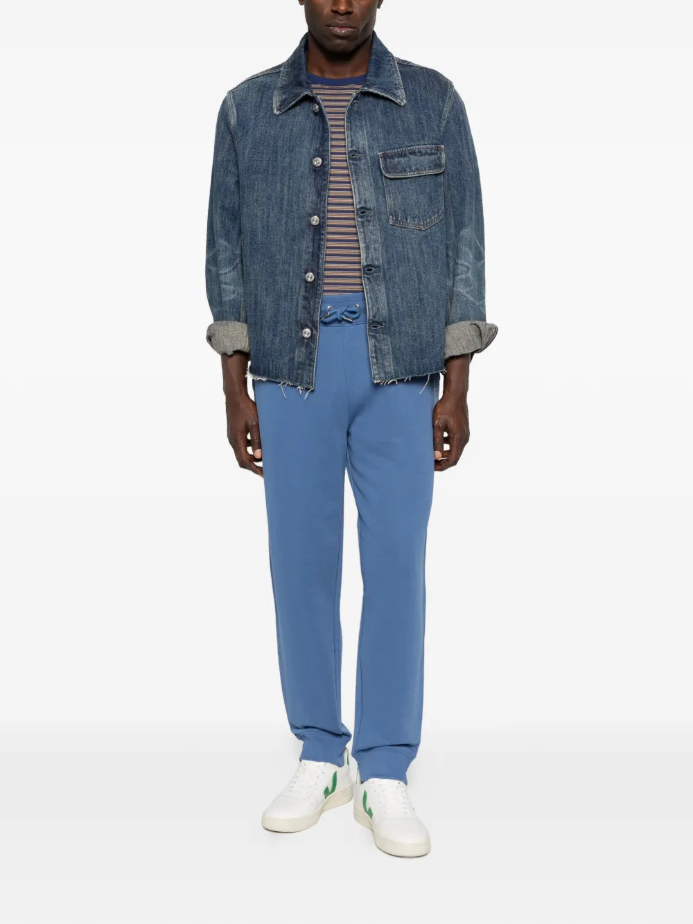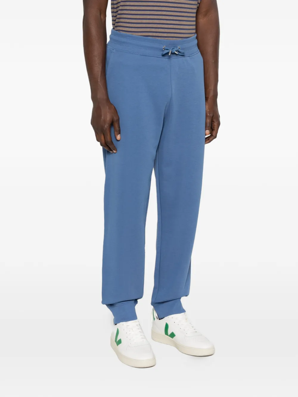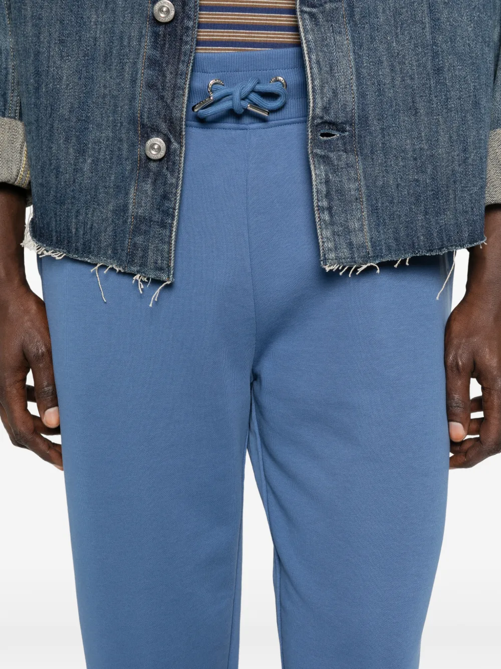 Голубой с логотипом-щитом, на кулиске на талии, с боковыми прорезными карманами, с эластичными манжетами
