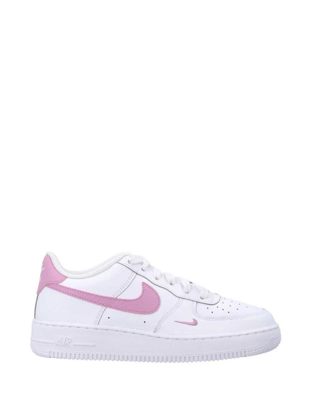 Белый цвет, розовые детали, перфорированный носок, логотип Swoosh, шнуровка