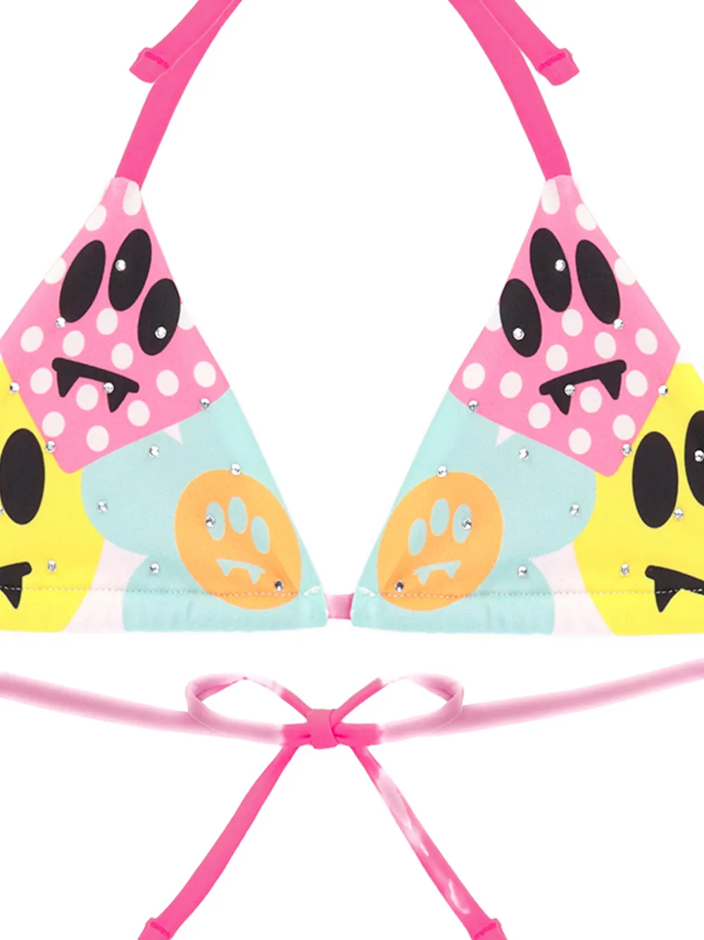 Розовый и разноцветный галстук с графическим принтом, застежкой на завязках и украшением стразами