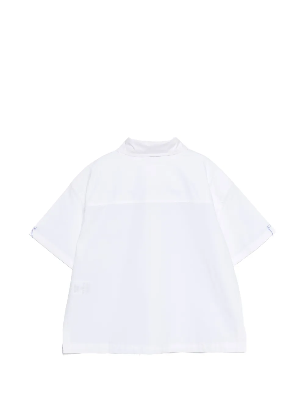 Белый цвет, вышитый карман, короткие рукава, застежка на пуговицы, тональная строчка