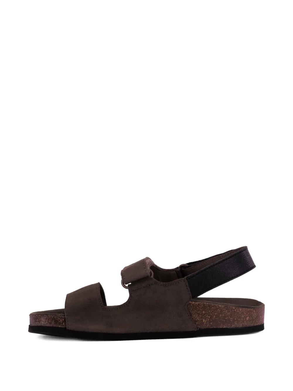 Коричневый ремешок с застежкой на липучке, ремешок сзади, промежуточная подошва с эффектом пробки, плоская подошва