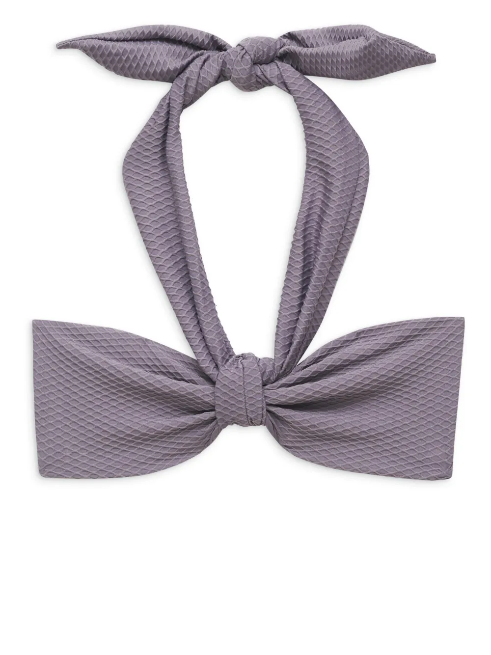 Темно-фиолетовый, смесовый переработанный нейлон, эластичный материал, фактурная отделка, декор в виде узла и завязки вокруг шеи. Этот товар как минимум на 50% состоит из переработанных или повторно использованных материалов. Узнать больше о том, какие товары получают отметку «Ответственный выбор», можно здесь.