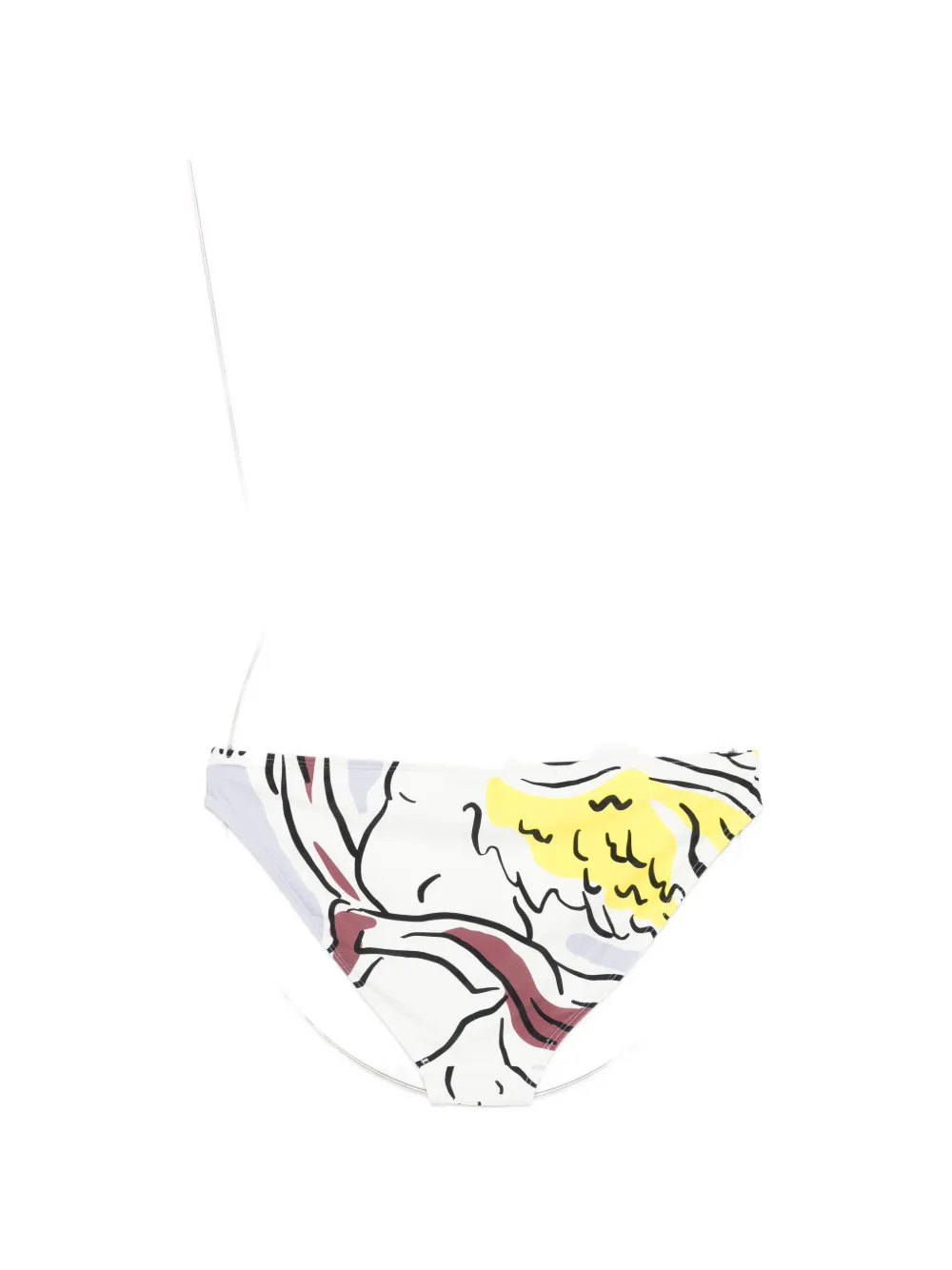 Белый и разноцветный принт по всей поверхности, заниженная посадка, минимальное покрытие. Пожалуйста, примерьте купальник поверх собственного белья.