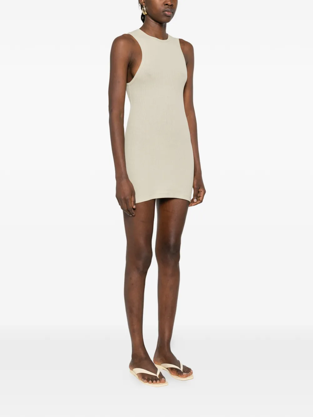 Серый трикотажный топ в рубчик с круглым вырезом, без рукавов, прилегающий силуэт