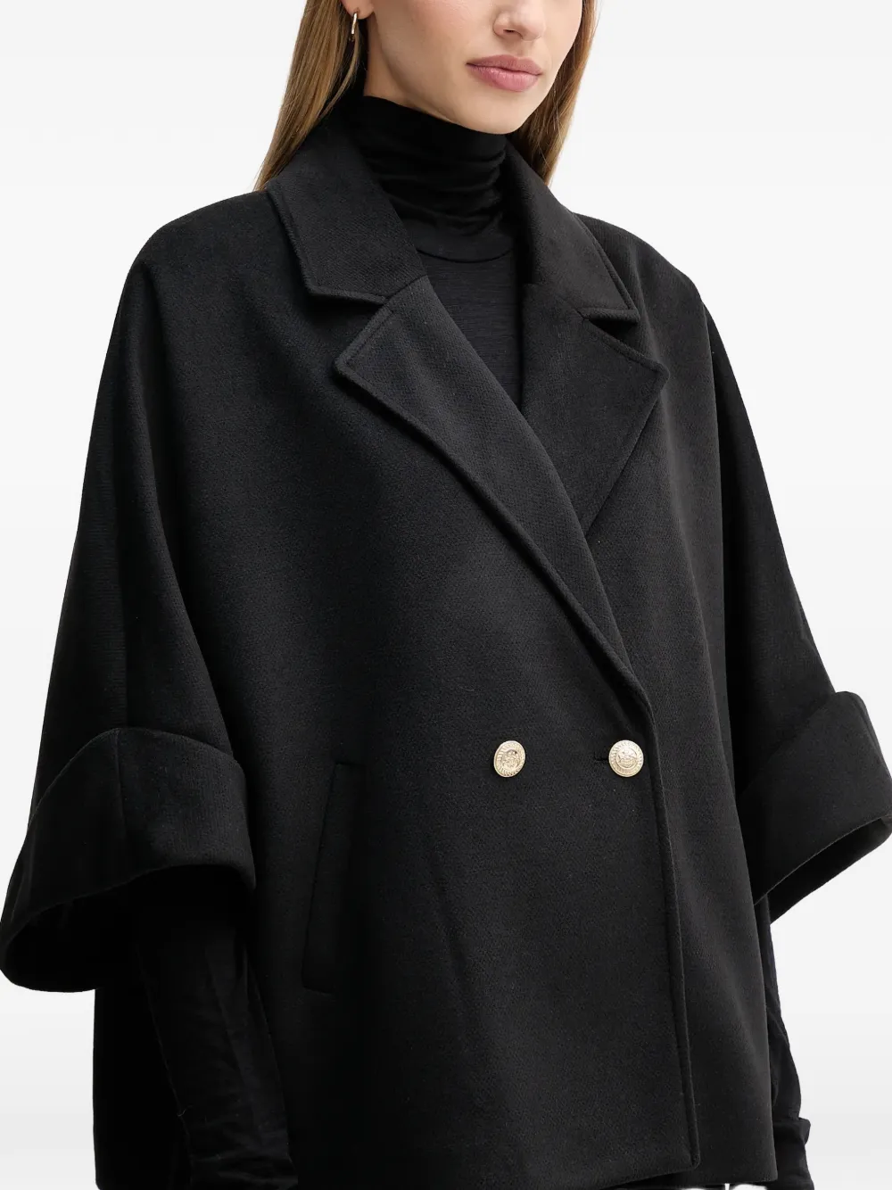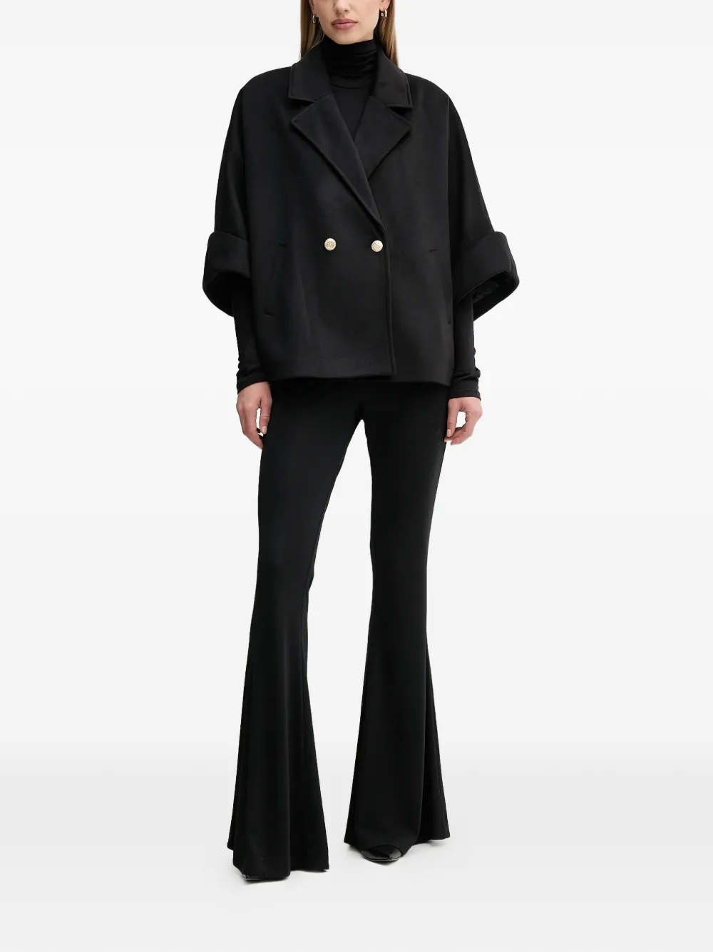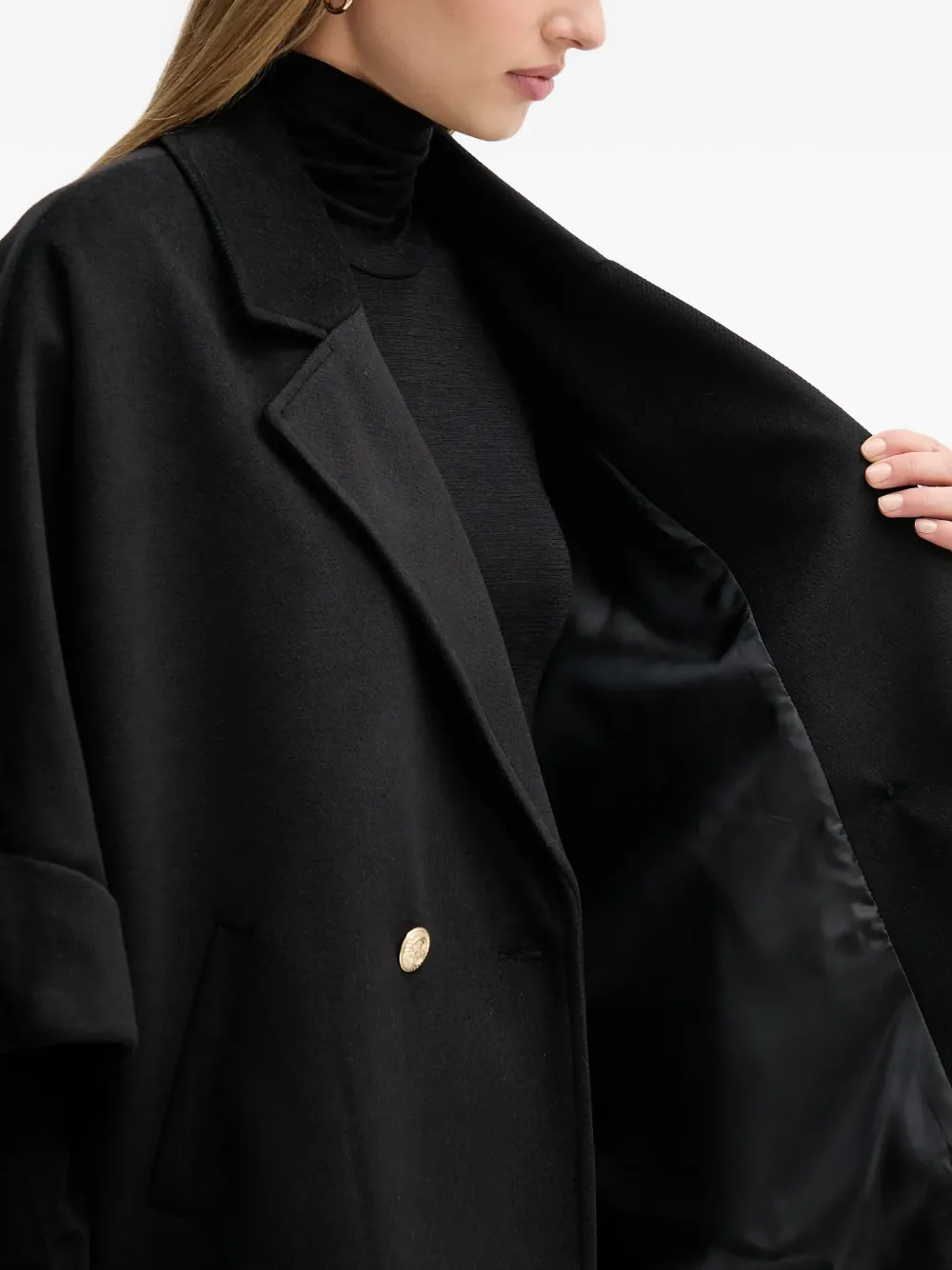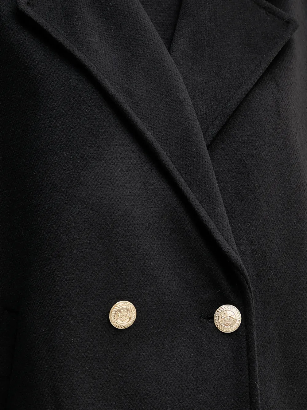 Черный двубортный пиджак с заостренными лацканами и длинными рукавами