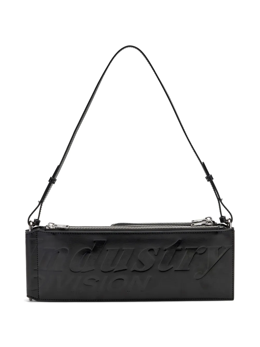 Черный цвет, тисненый логотип, застежка-молния, внешний карман на молнии, регулируемый плечевой ремень, основное отделение, фурнитура серебристого цвета