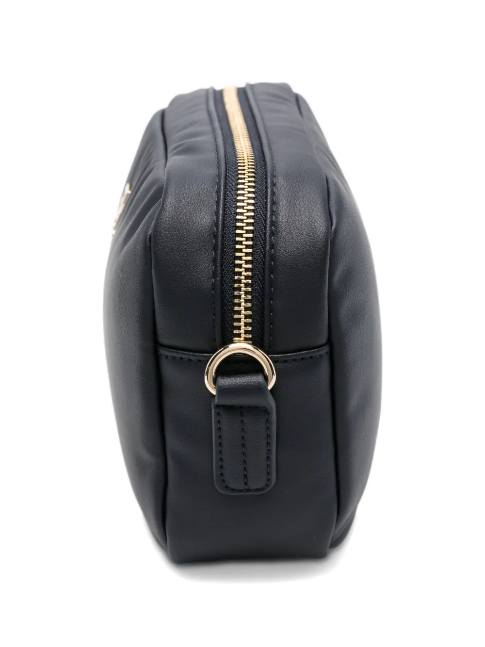 Синяя табличка с логотипом, застежка-молния, регулируемый плечевой ремень, фурнитура золотистого оттенка. В комплекте идет защитный чехол для хранения.