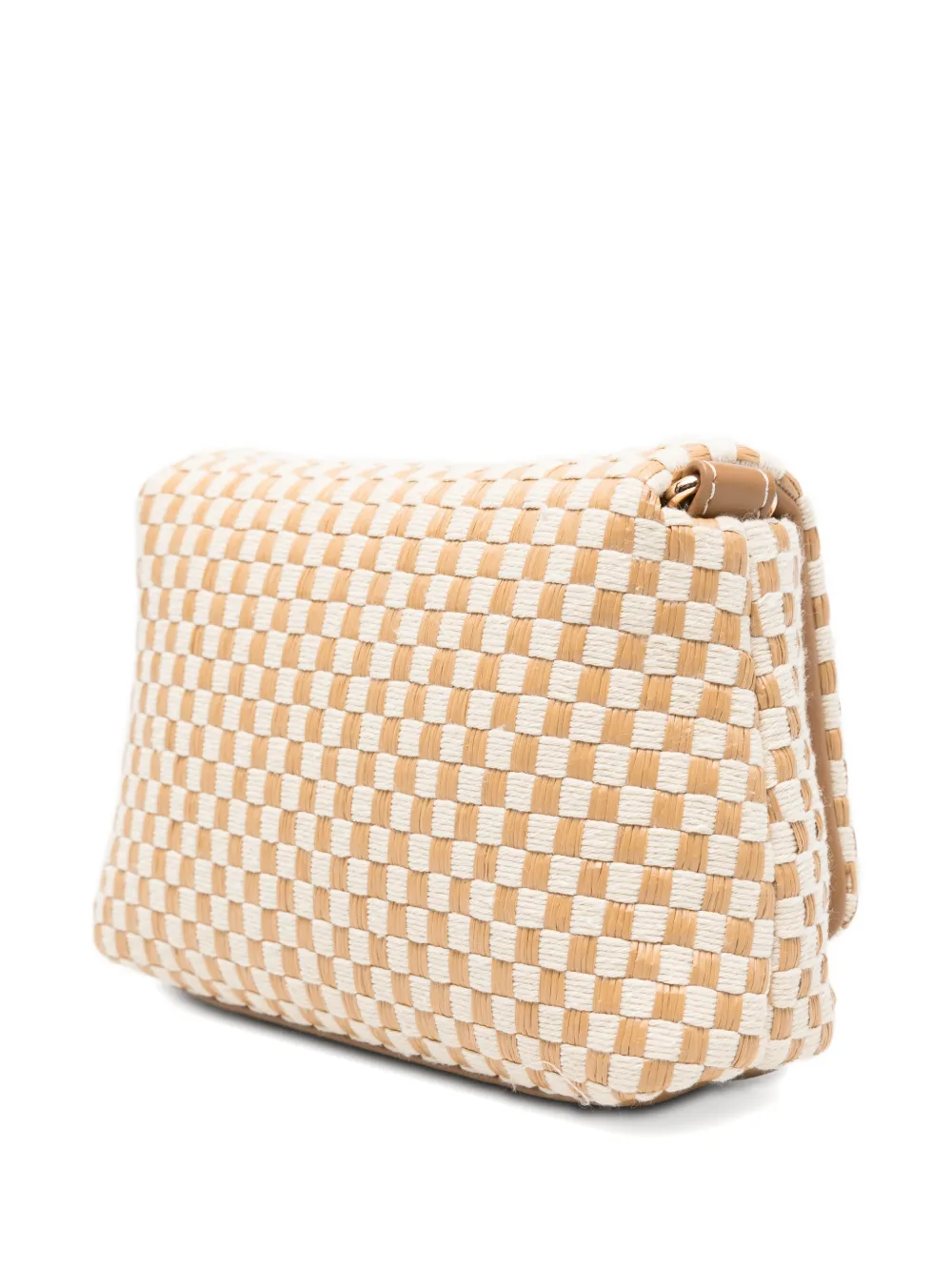Бежевый плетеный дизайн, детали с логотипом, плечевой ремень-цепочка, внутренний карман на молнии. В комплекте идет защитный пыльник.