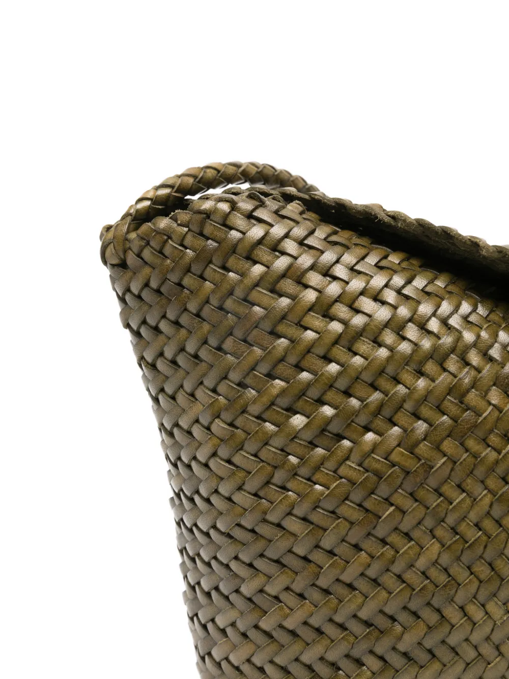 Зеленый плетеный дизайн, плечевой ремень, застежка на кнопку. В комплекте защитный чехол для хранения.