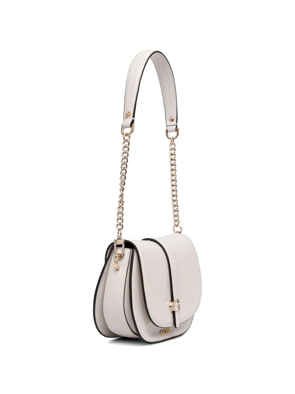 Молочно-белый, фурнитура цвета золота, плечевой ремень, металлический логотип, застежка на молнии