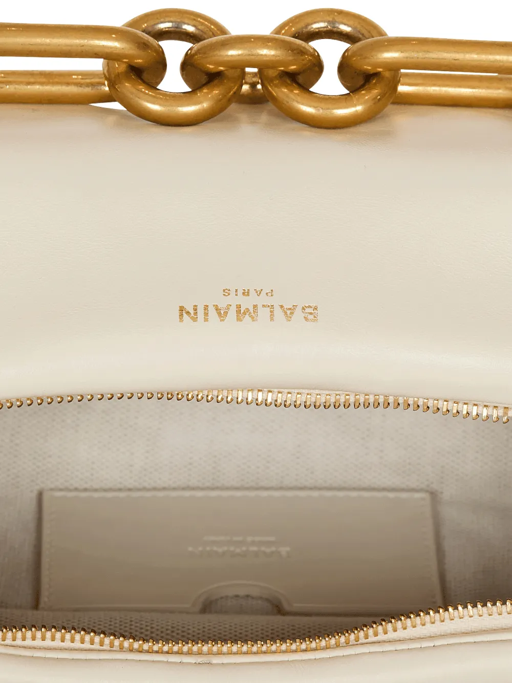 Светло-бежевый, отделка цепочкой, застежка-молния, внутренний открытый карман