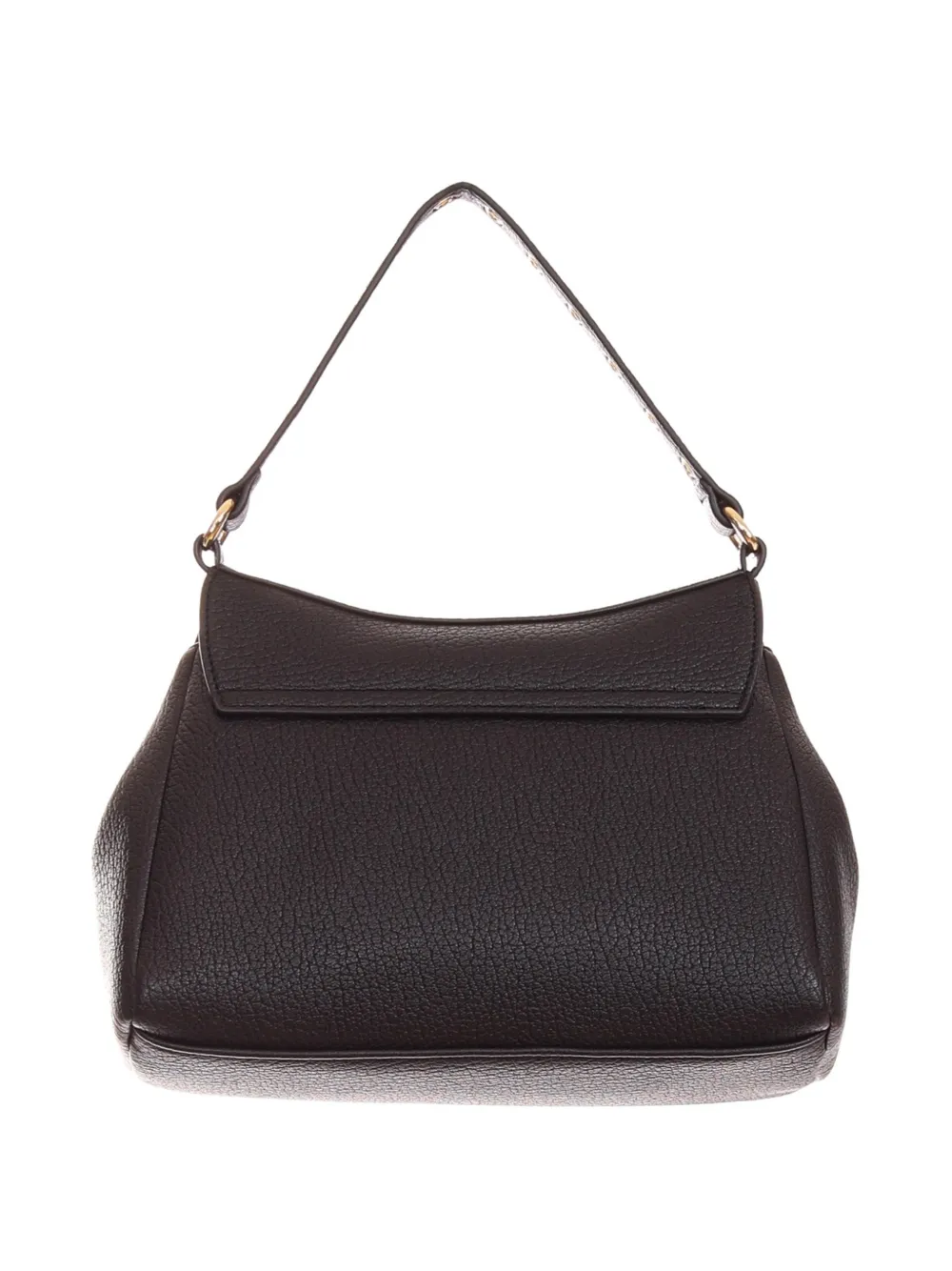 Черная сумка с верхней ручкой, клапаном, логотипом и регулируемым ремнем
