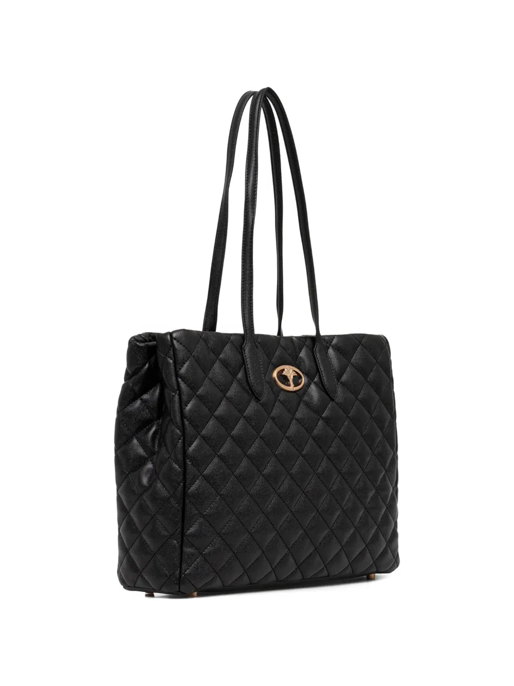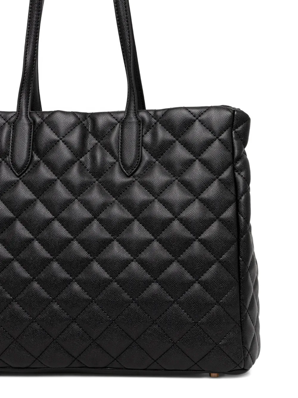 Черная стеганая отделка, две верхние ручки, верхняя застежка-молния, основное отделение