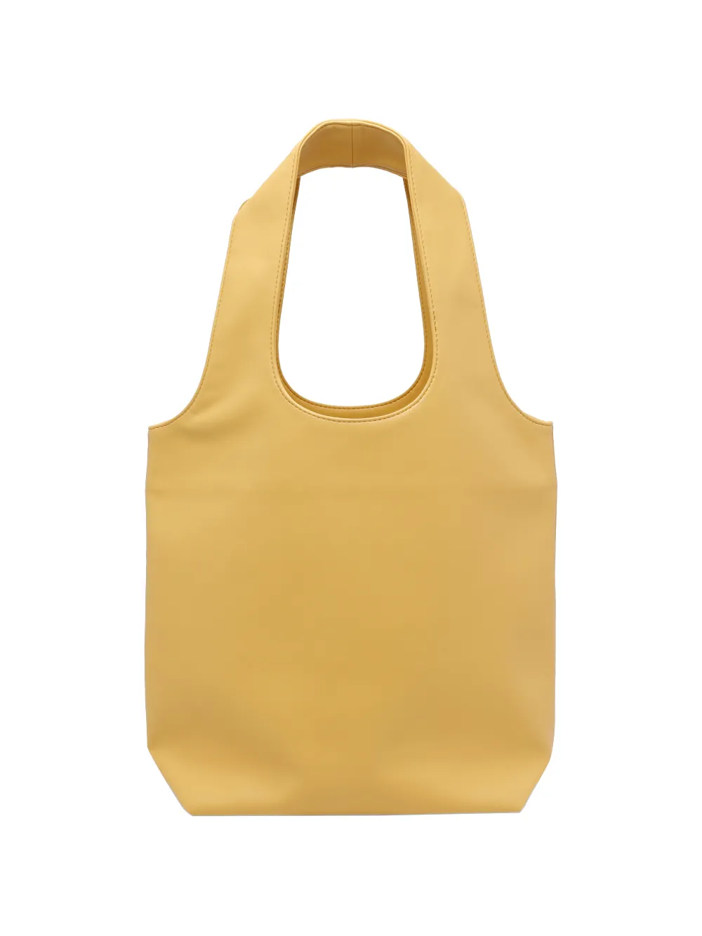 Маслянисто-желтый цвет, логотип спереди, две ручки, внутренний открытый карман