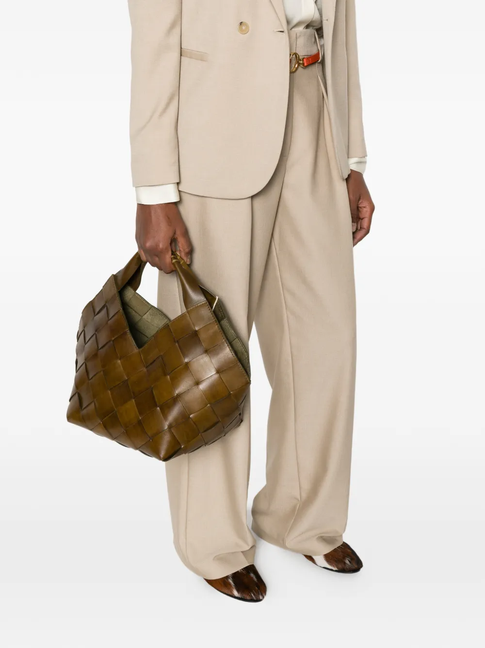 Топ-хендл хаки с плетеным дизайном. В комплекте защитный мешок для хранения.