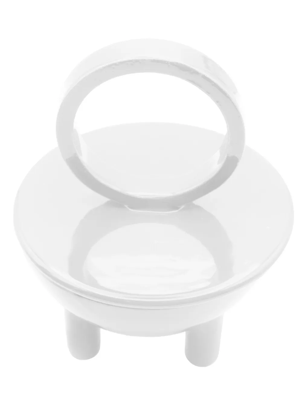 Белая круглая ручка, три ножки, ноты амбры, розового перца, озона и морской соли