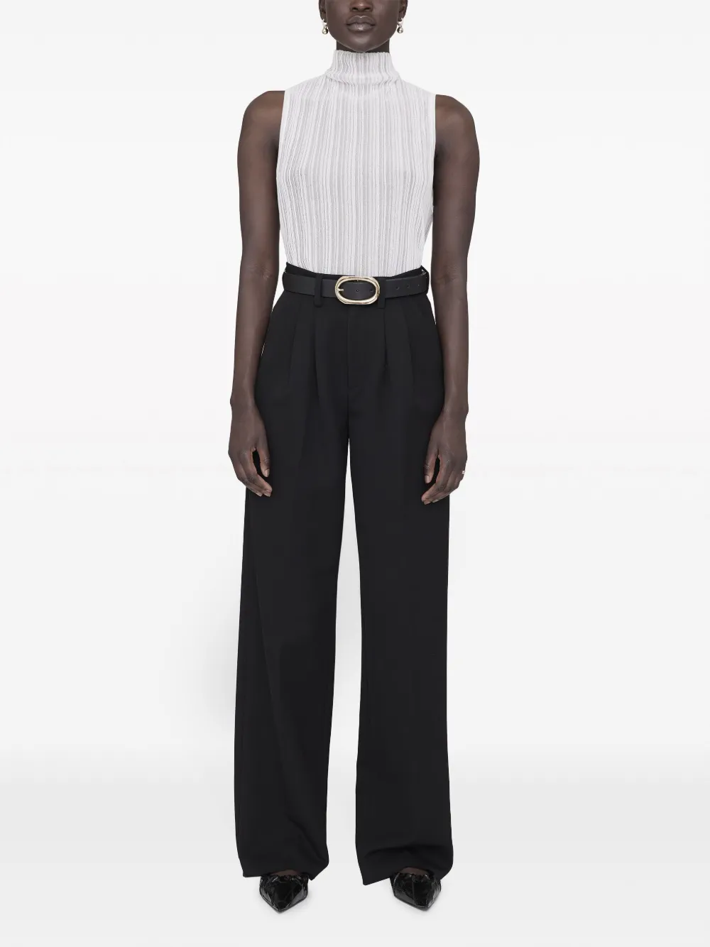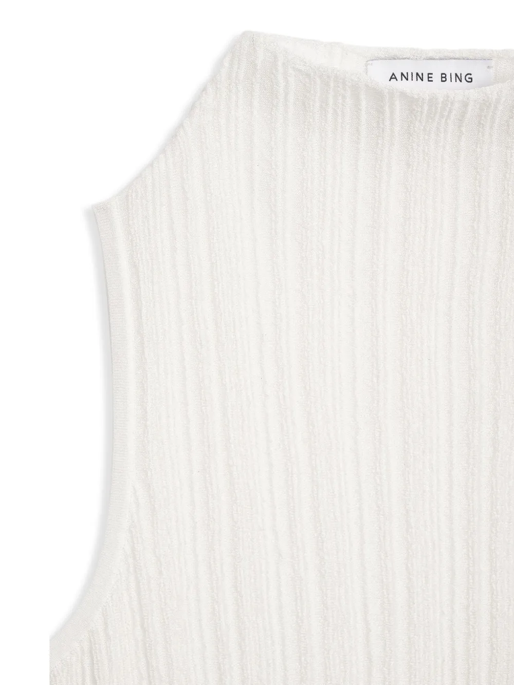 Подробнее о товаре: Переработанная вискоза, трикотаж в рубчик, узор в вертикальную полоску, высокий воротник, без рукавов и прямой подол. Этот товар как минимум на 50% состоит из переработанных или повторно использованных материалов. Узнать больше о том, какие товары получают отметку «Ответственный выбор», можно из материала «Как мы оцениваем экологичность и этичность».