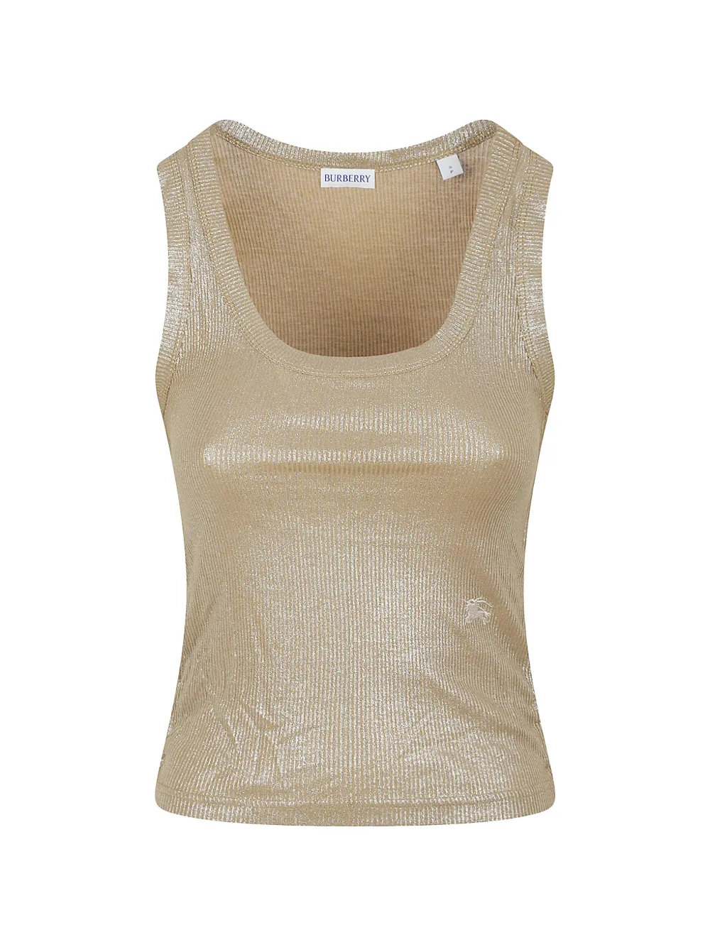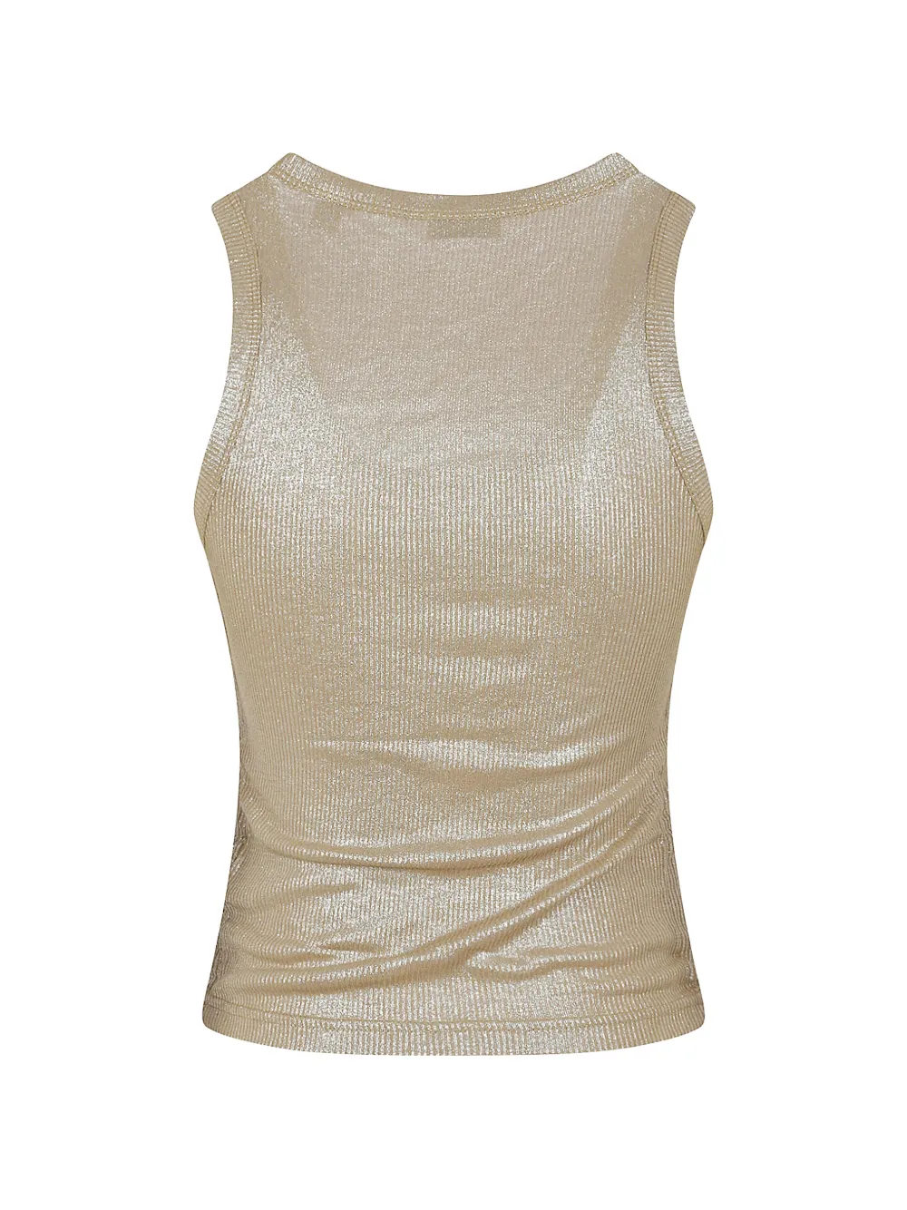 Золотистый топ в рубчик без рукавов с круглым вырезом, стандартного кроя, с логотипом