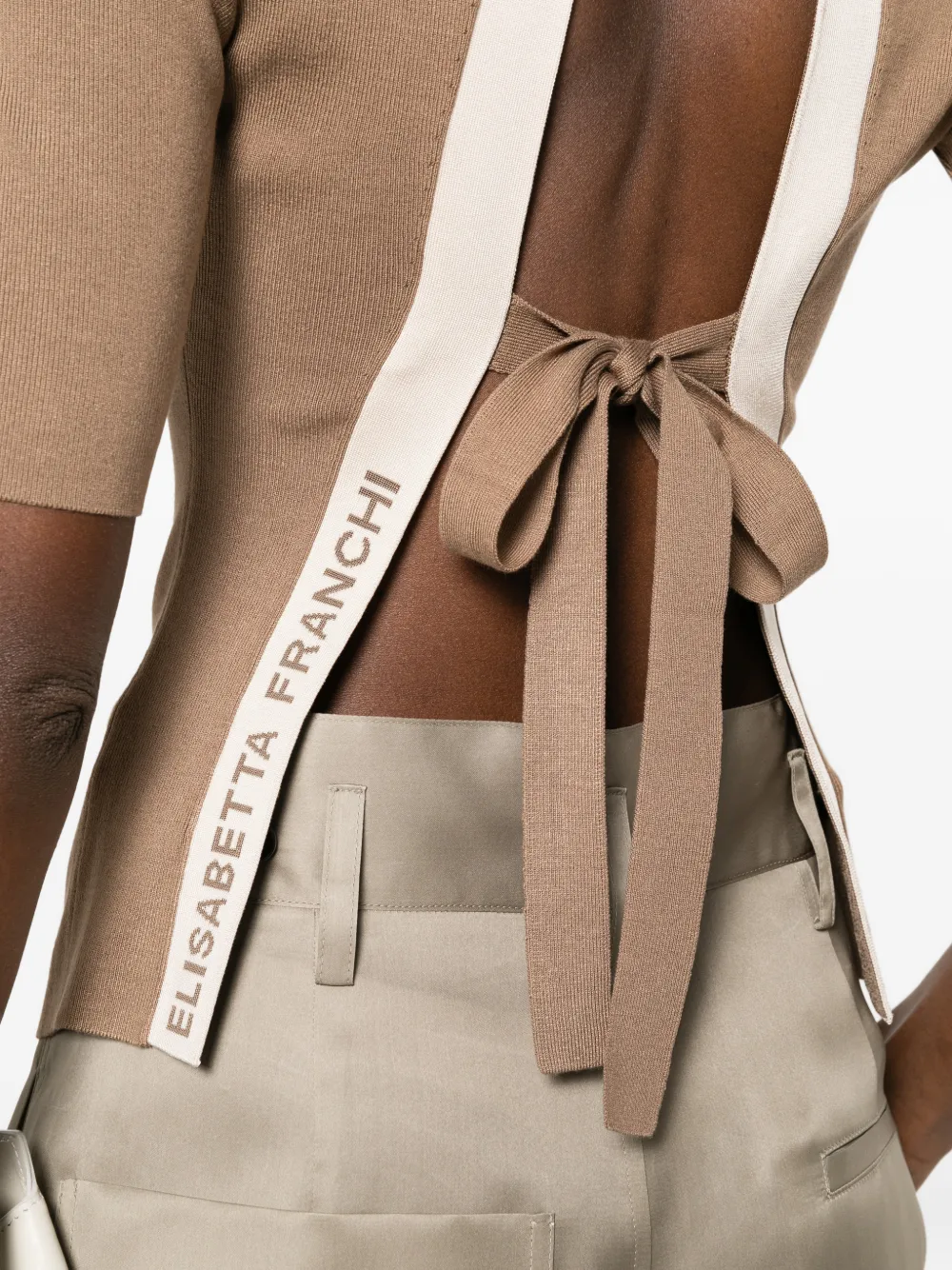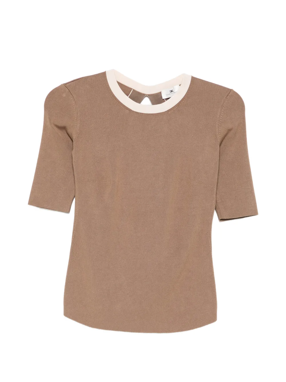 Топ в рубчик с вырезами Elisabetta Franchi, бежевый