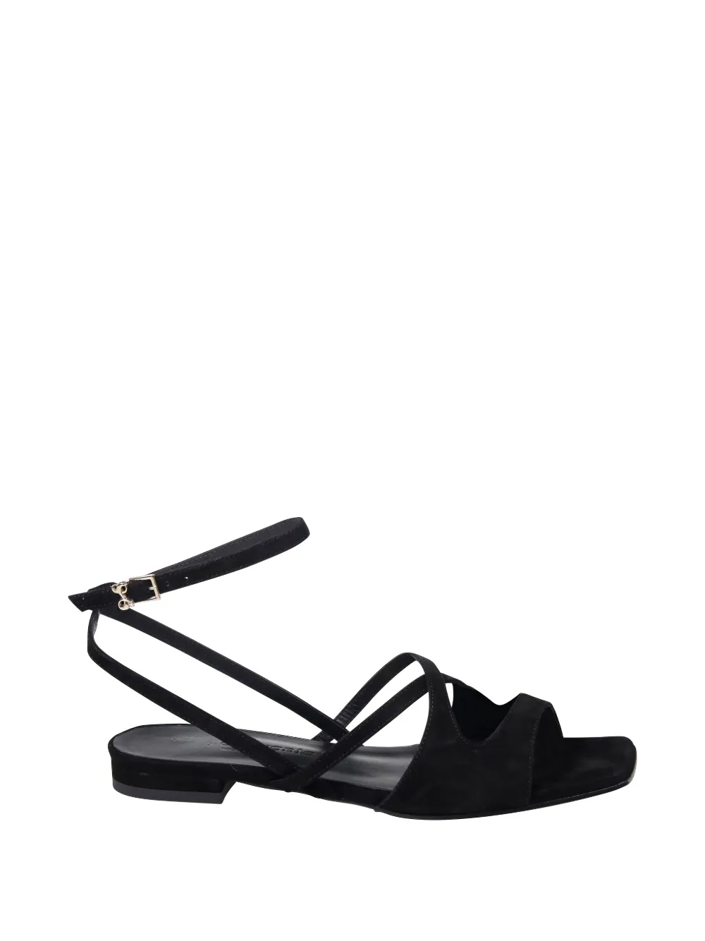 Черные замшевые босоножки с квадратным носком и ремешком на пряжке