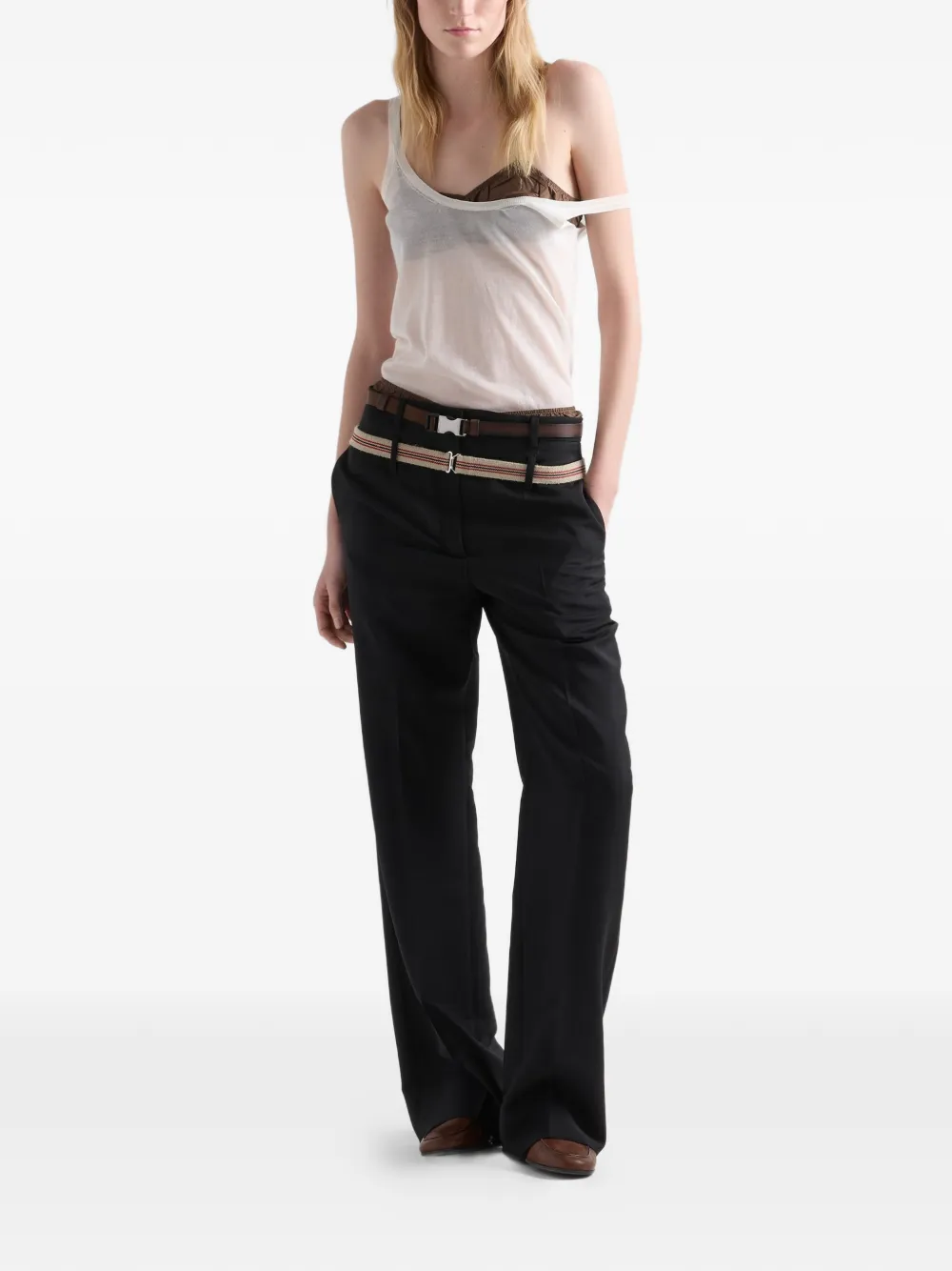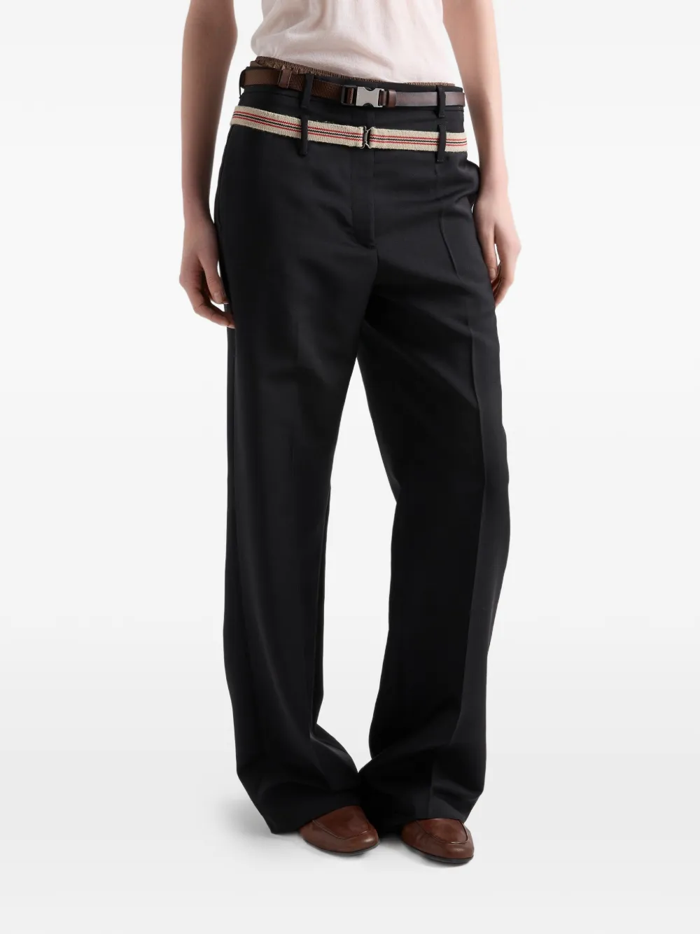Классические брюки в мужском стиле переосмыслены с мягким, широким кроем в современном стиле.