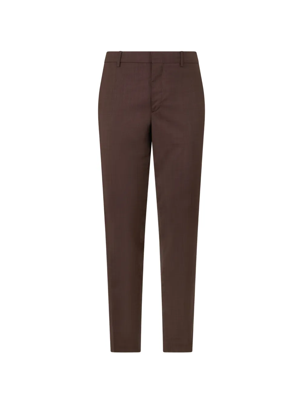 Коричневый цвет "bark", скрытая застежка спереди, шлевки для ремня, боковые прорезные карманы, задние карманы с листочкой, строгий крой