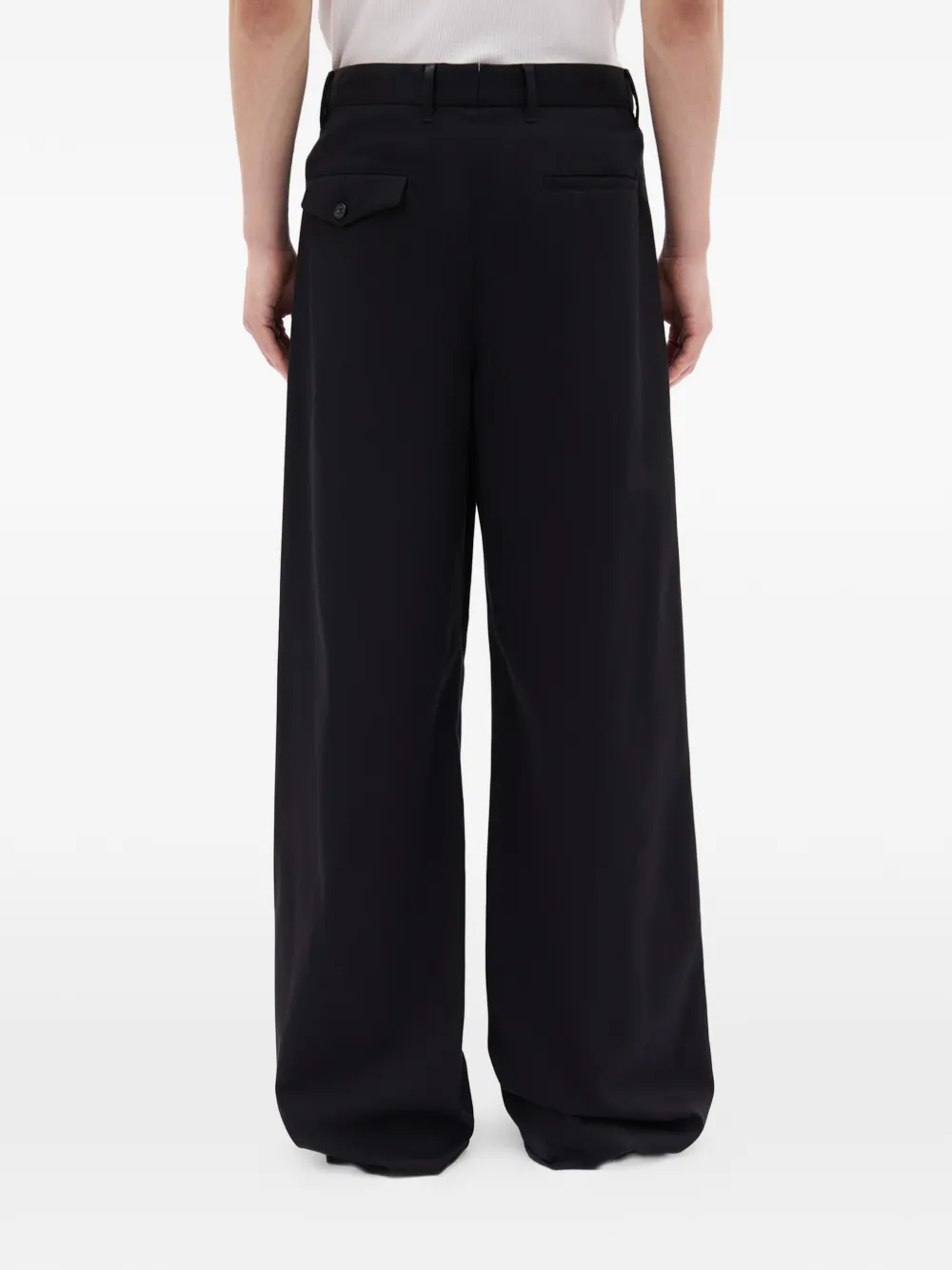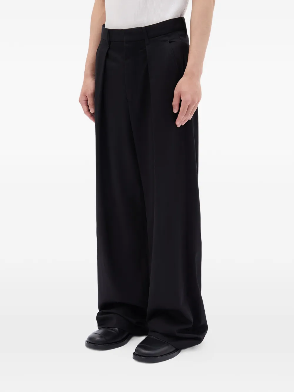 Черные хлопковые брюки с защипами, шлевками для ремня, задним прорезным карманом на пуговице и широкими штанинами