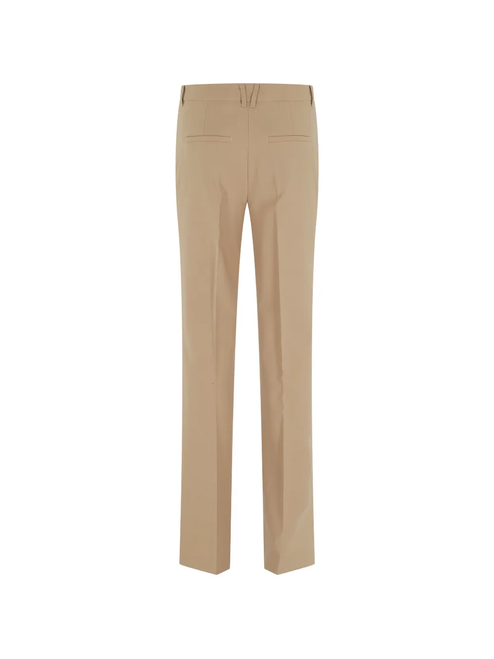 Бежевые прямые брюки, шлевки для ремня, задний прорезной карман, боковые карманы с клапанами, скрытая застежка