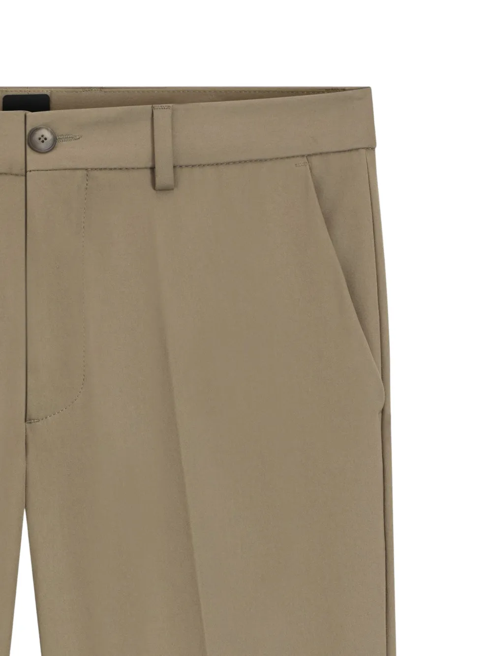 Коричневый, застежка на пуговице, шлевки для ремня, боковая молния, боковые карманы, прорезной карман сзади