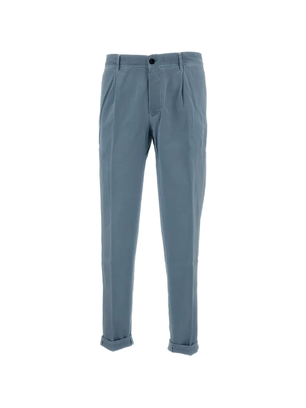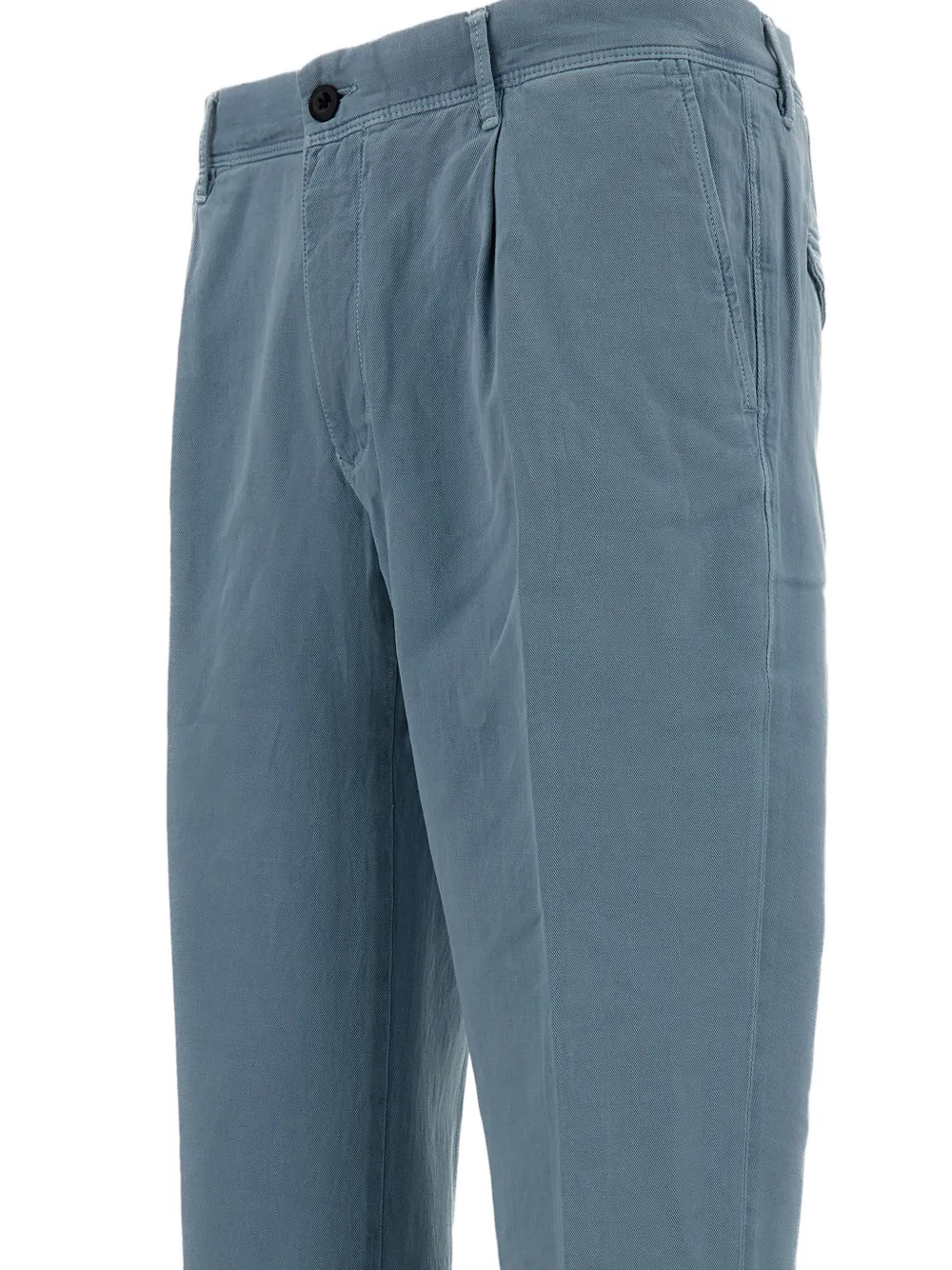 Светло-голубой, шлевки для ремня, застежка спереди на молнию и пуговицу, боковые карманы, задние карманы