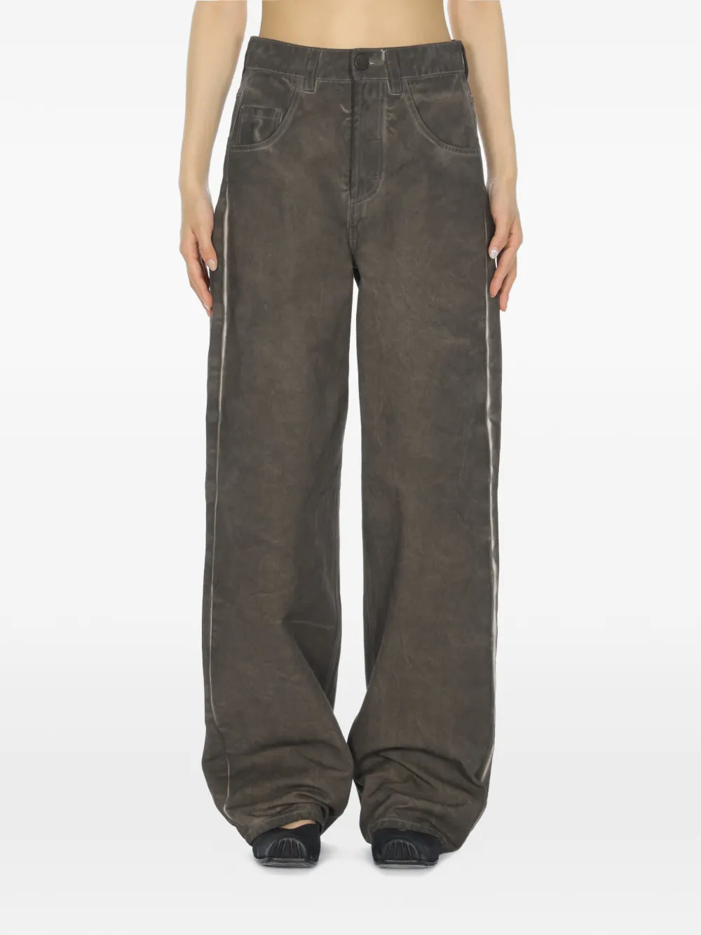 Серые широкие брюки с шлевками для ремня, боковой отделкой в виде полос и накладными карманами сзади