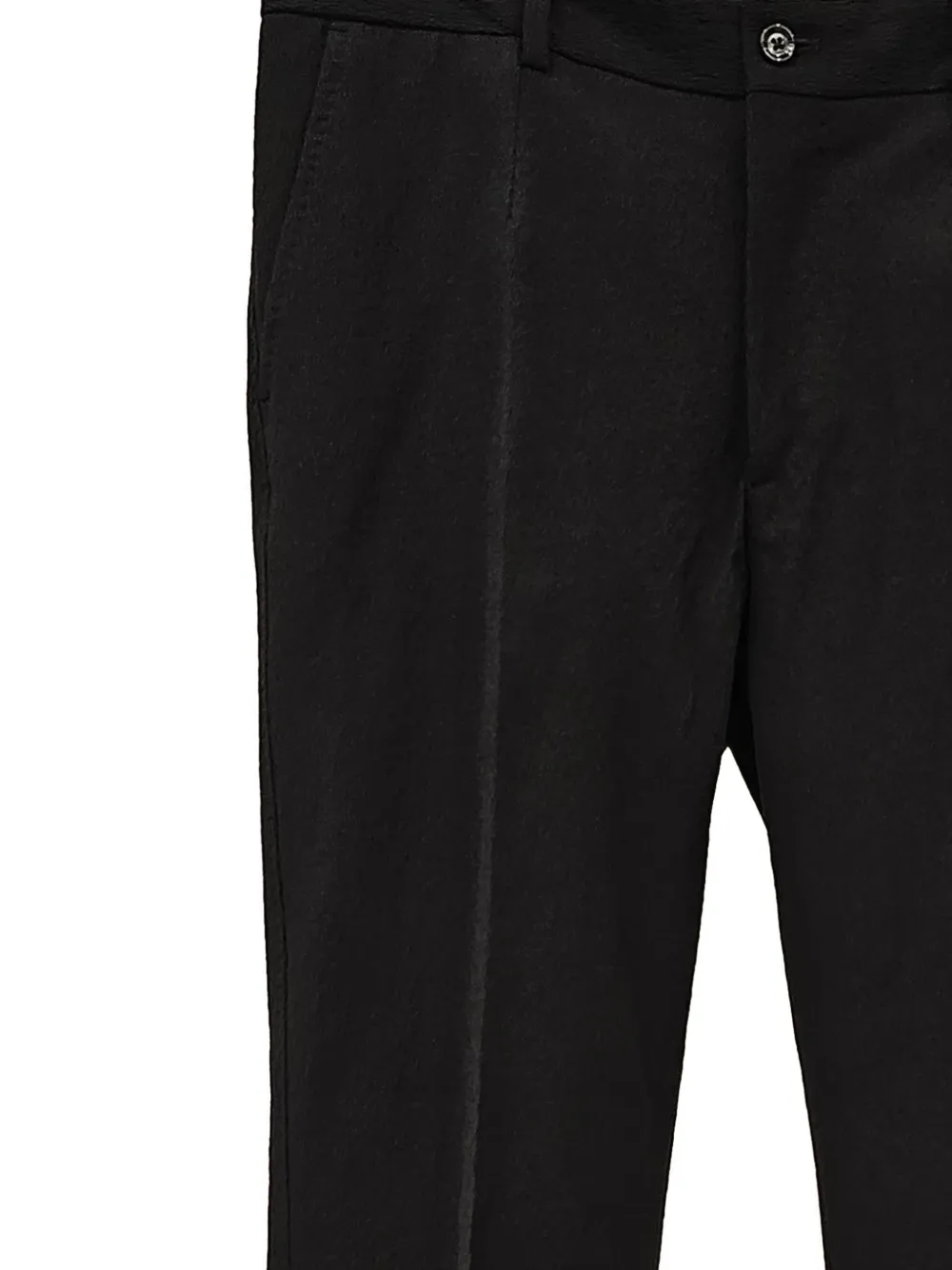 Черные хлопковые брюки с застежкой на пуговице, шлевками для ремня, передними и задними карманами