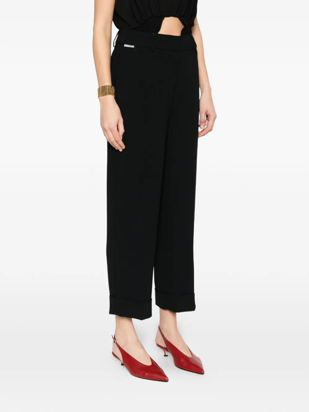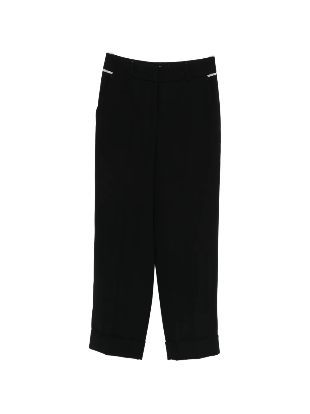 Черные брюки с манжетами, серебристой отделкой, прямой крой, стандартная посадка, средняя талия