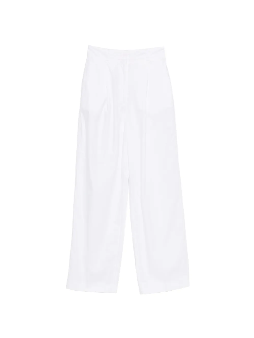 Белые хлопковые широкие брюки с фронтальными складками, потайной застежкой и шлевками для ремня