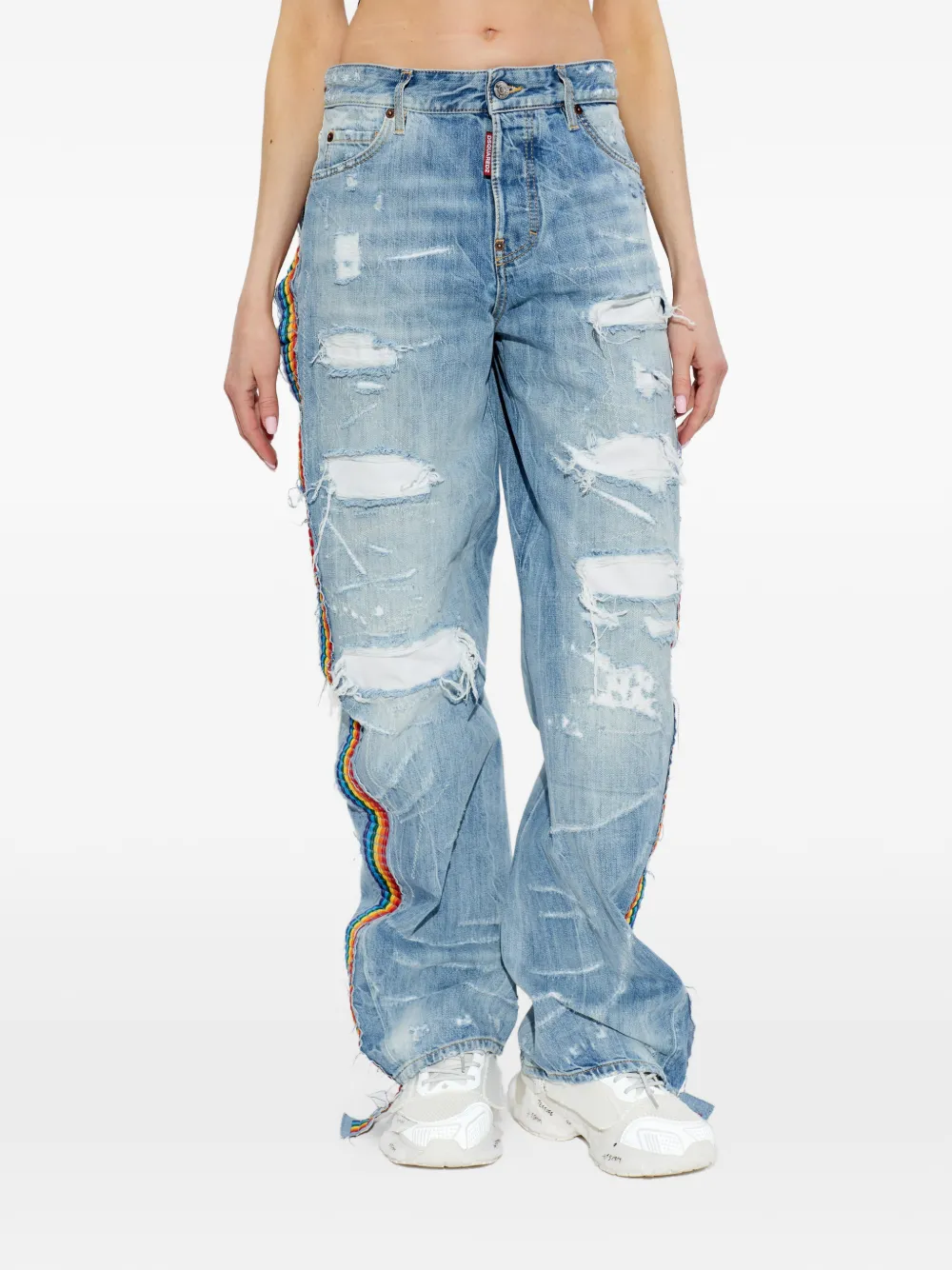 Потертые радужные брюки Dsquared2, синий 105 278₽