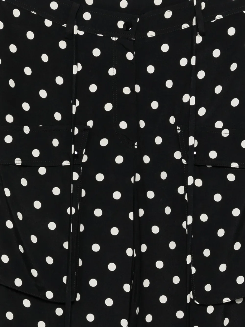 Черный принт в горошек, накладные карманы спереди, шнурок, потайная застежка, стандартный крой