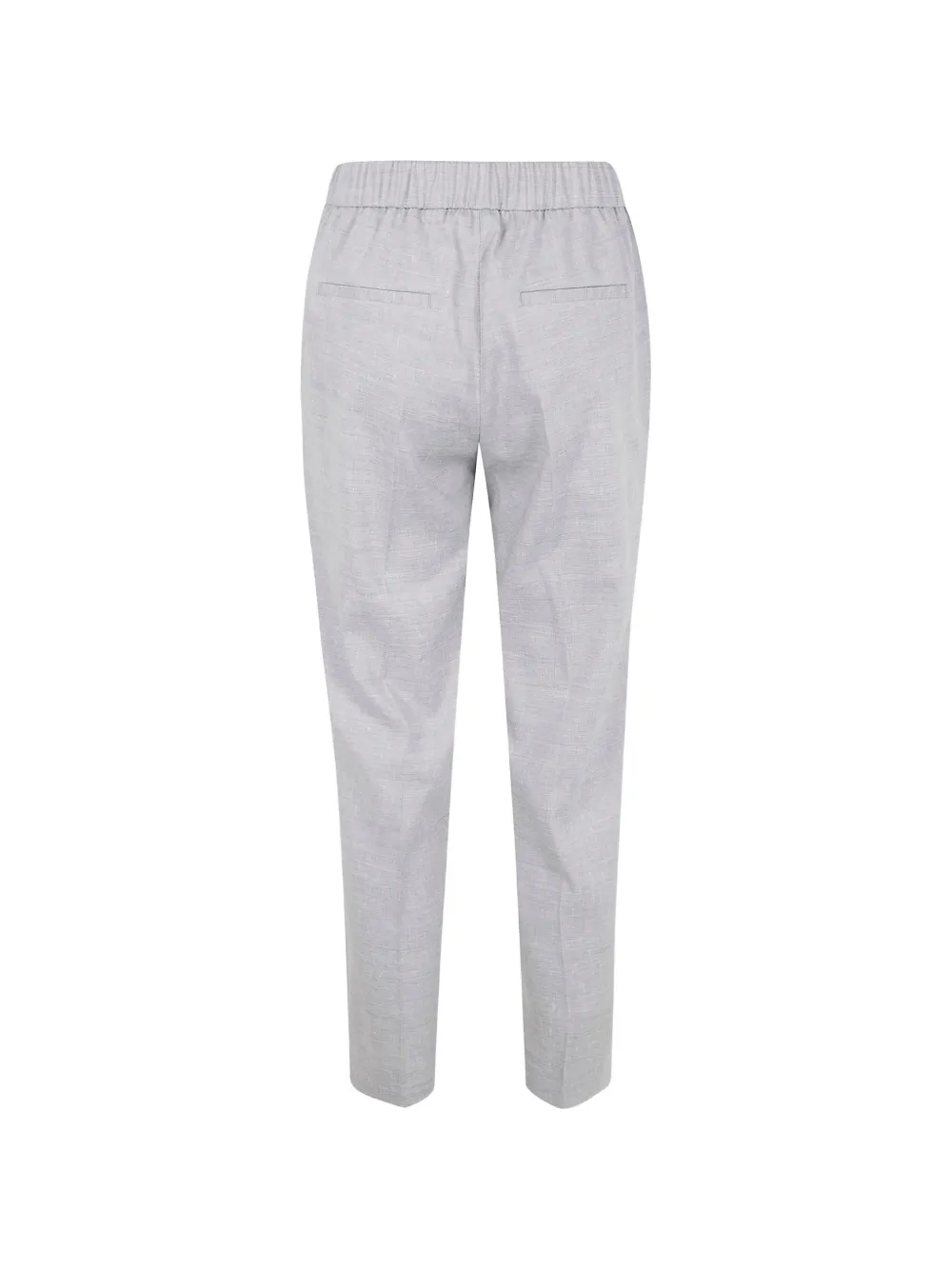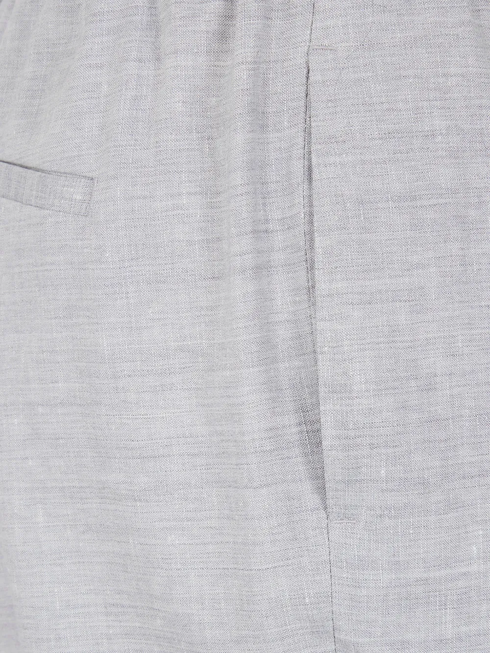 Серый цвет, эластичный пояс, два прорезных кармана сзади, два боковых прорезных кармана