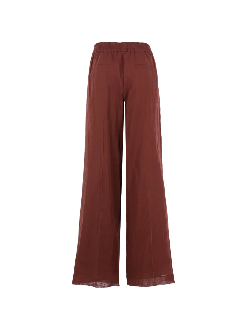 Бордовые плиссированные широкие брюки с эластичным поясом и задним прорезным карманом