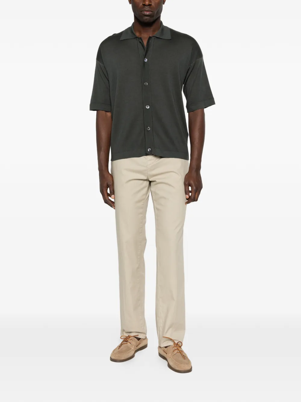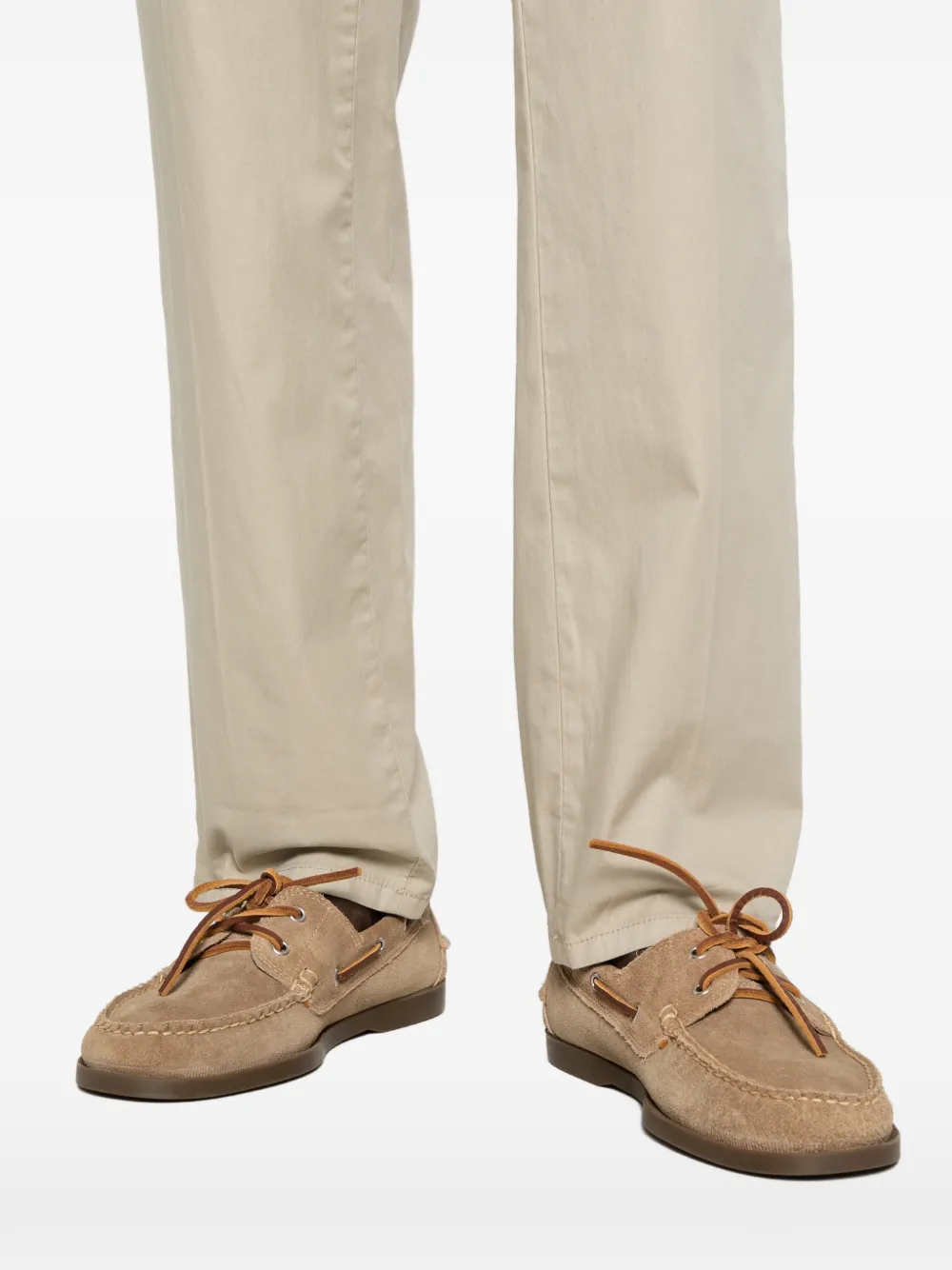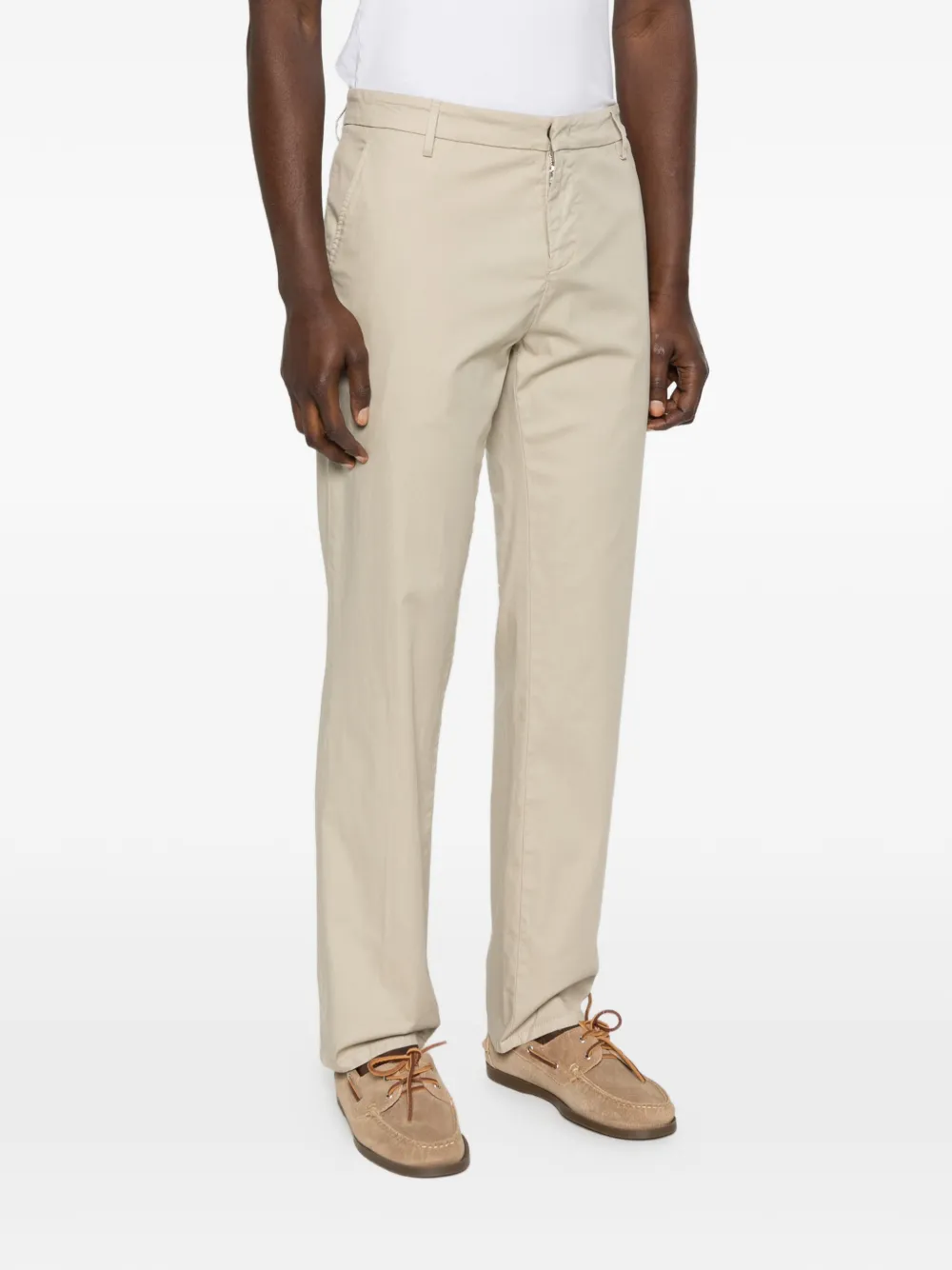 Бежевые прямые брюки с петлями для ремня, прорезными карманами и карманом с листочкой