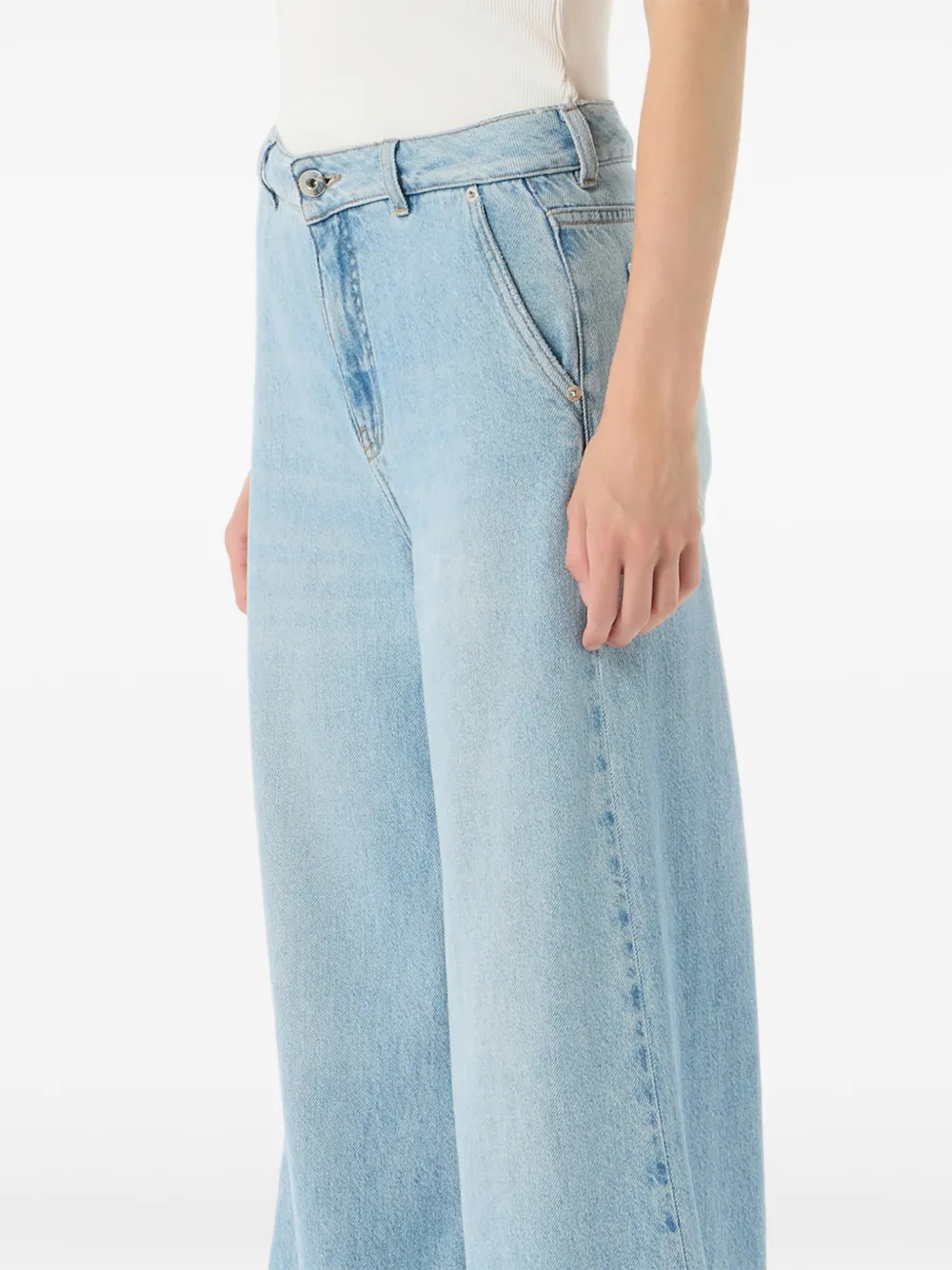Светло-голубые джинсы с эффектом денима, широкие штанины, карманы, шлевки для ремня