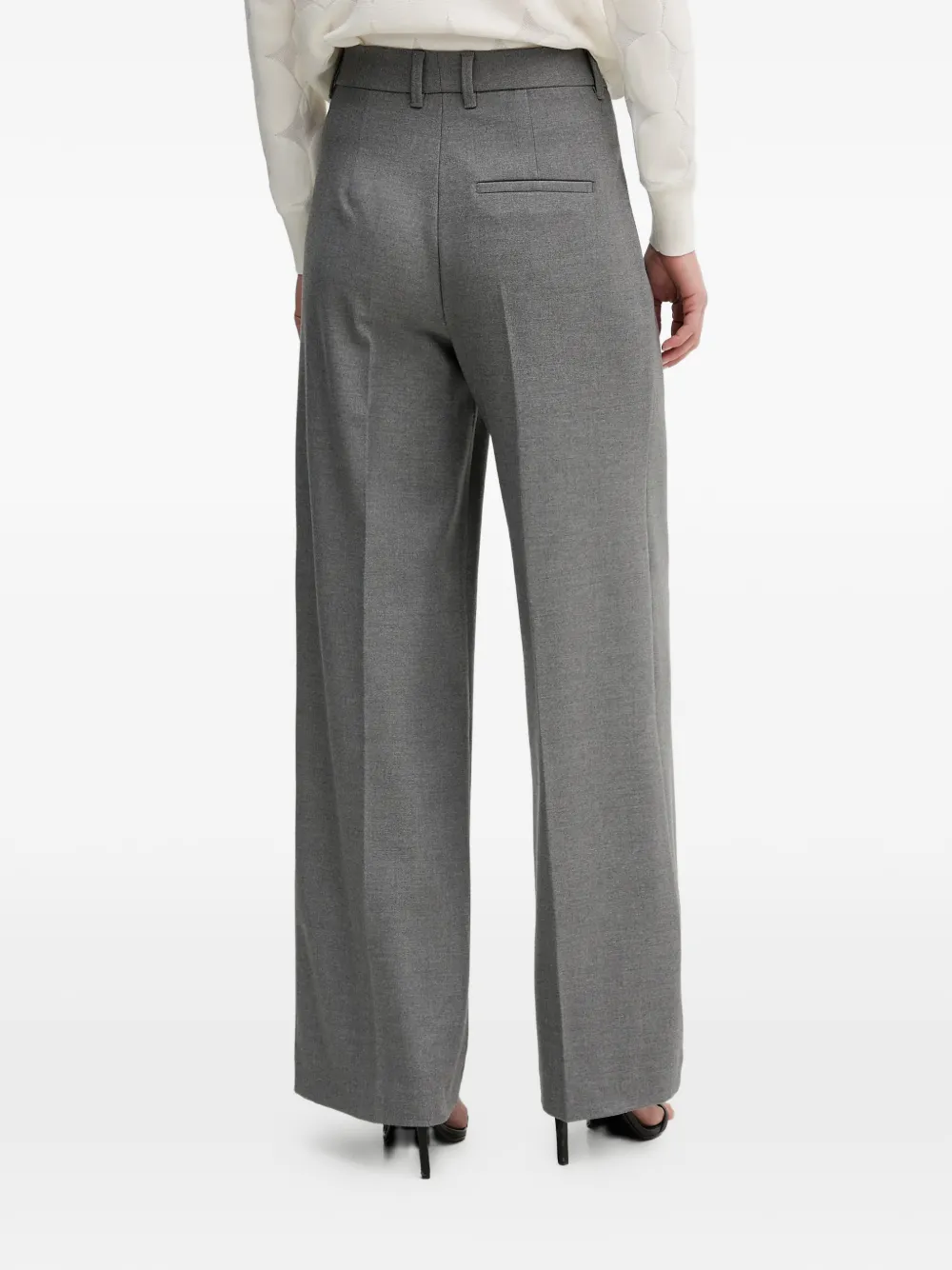 Серые, шлевки для ремня, складки, задний карман, широкие брючины, потайная застежка