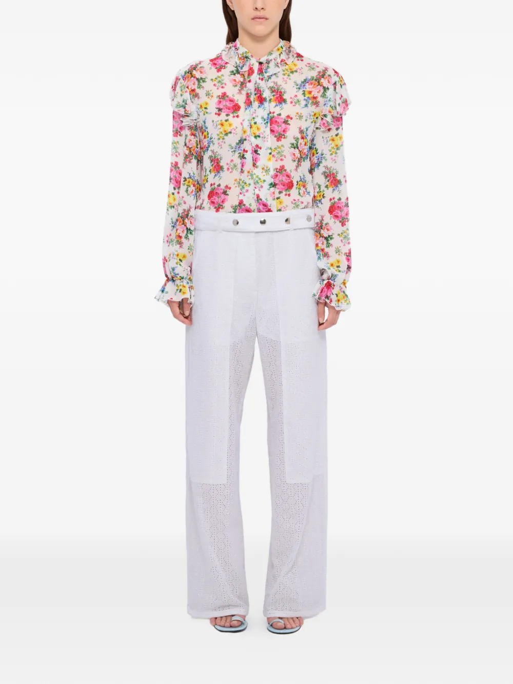 Брюки с отделкой люверсами Msgm, белый 55 387₽