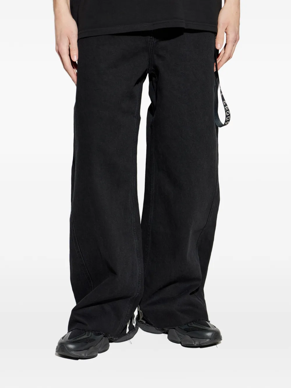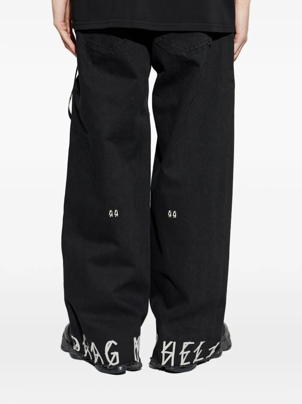 Черная хлопковая одежда с боковой отделкой, необработанным краем и вышивкой